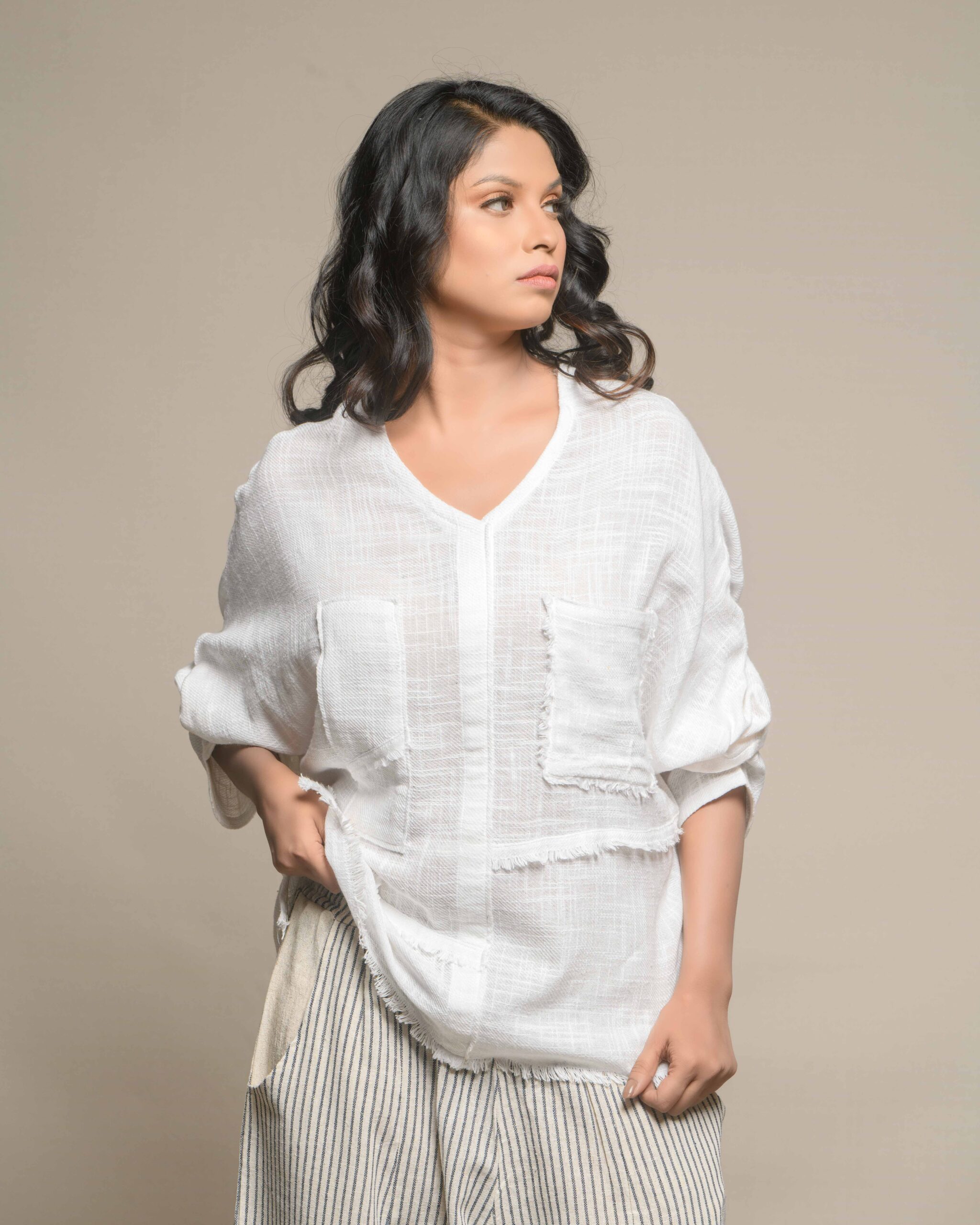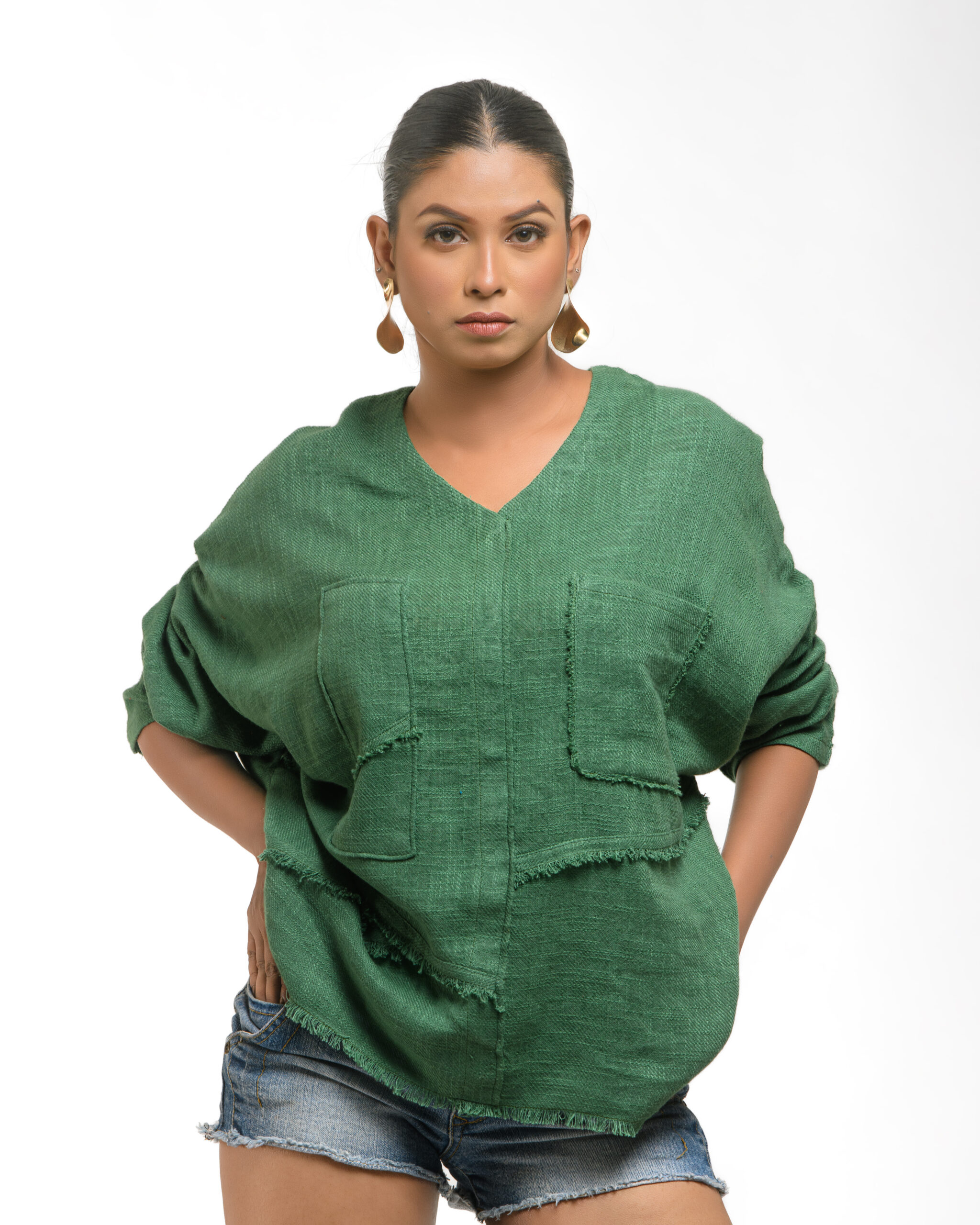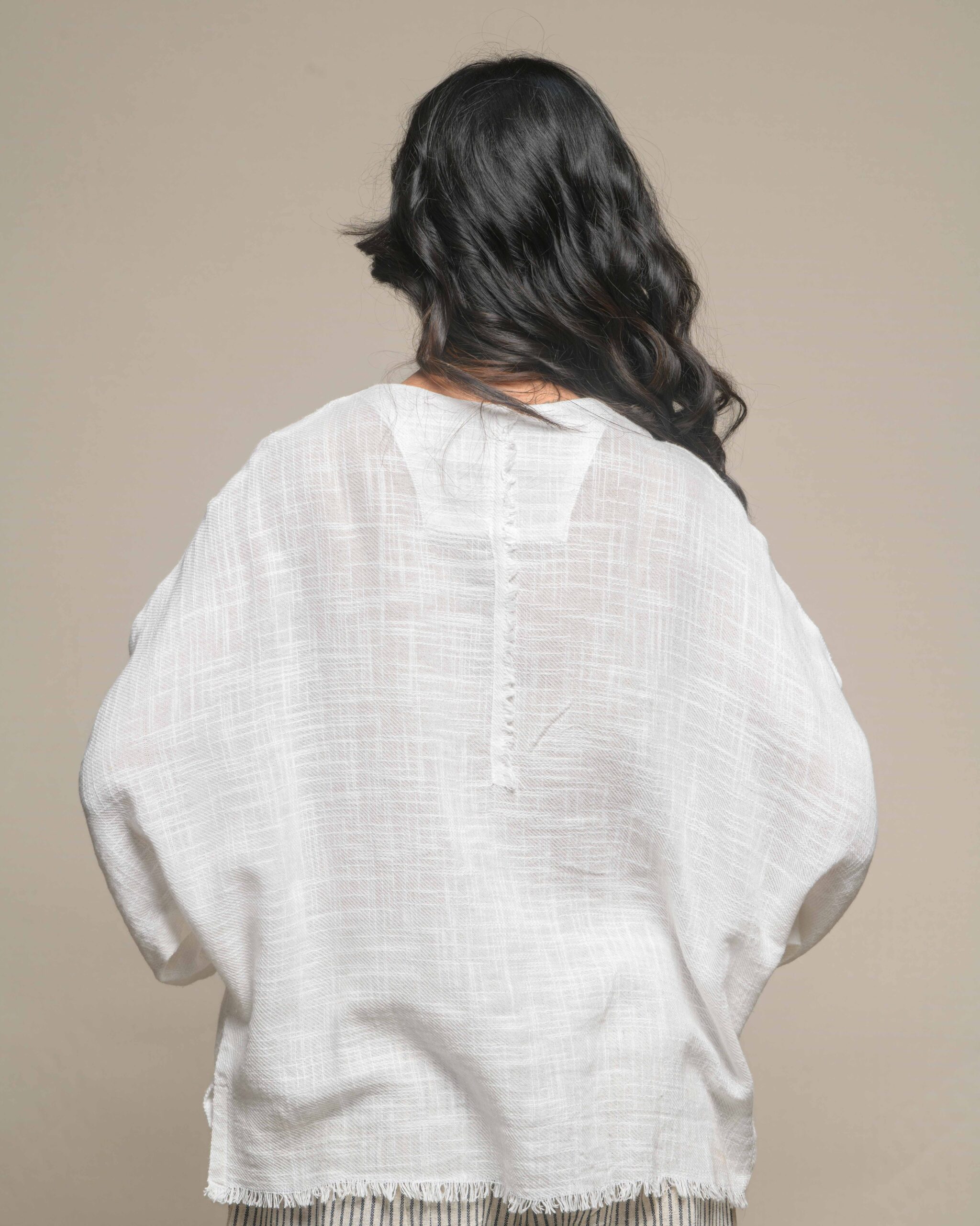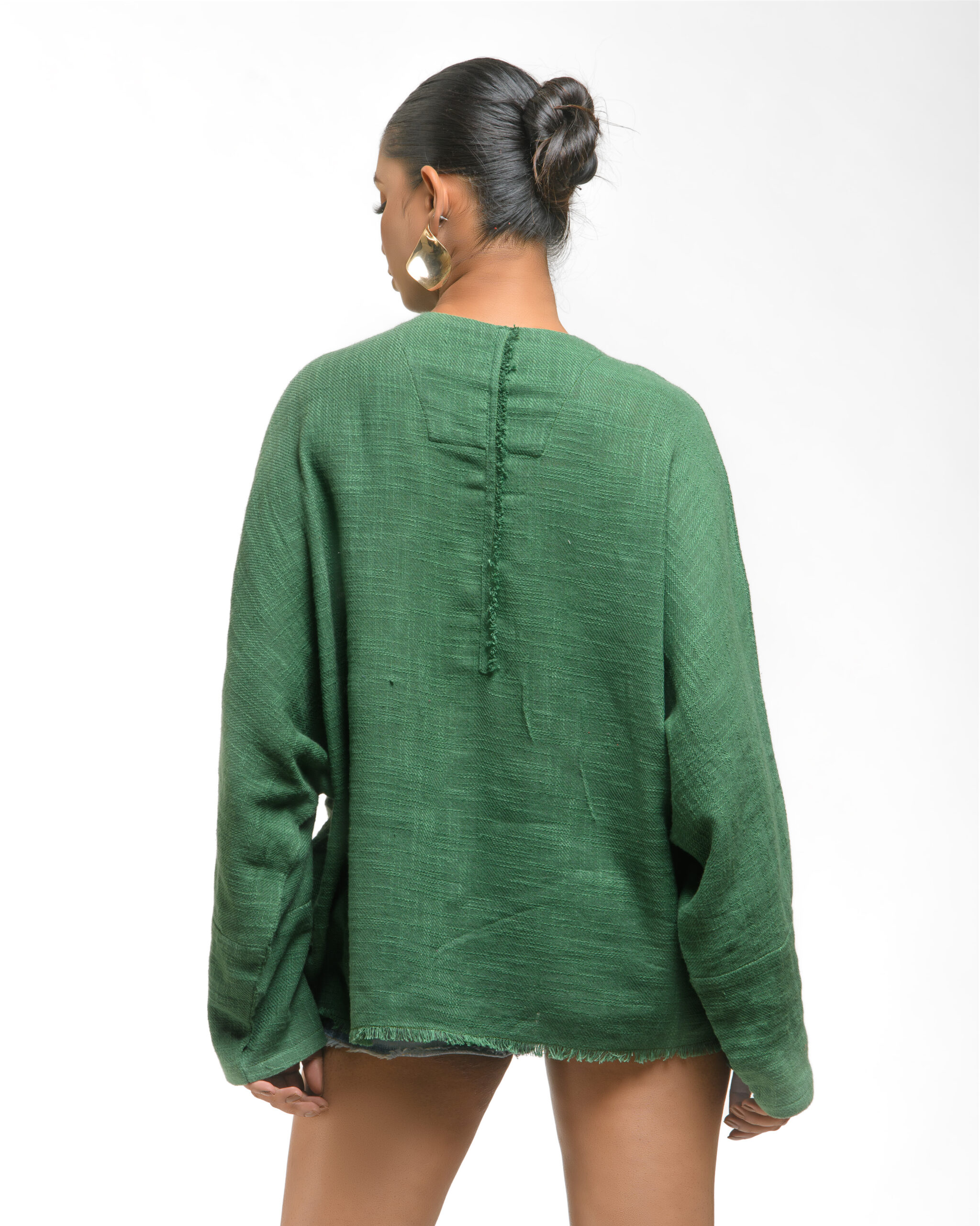 Effortlessly chic, this oversized Boho shirt is crafted from super flowy, light slub Khadi, guaranteeing breathability and comfort. Dyed with certified azo-free dyes, this pure piece embodies the zero-chemical commitment, weaving the artisanās “humane touch” into its trendy, relaxed silhouette.