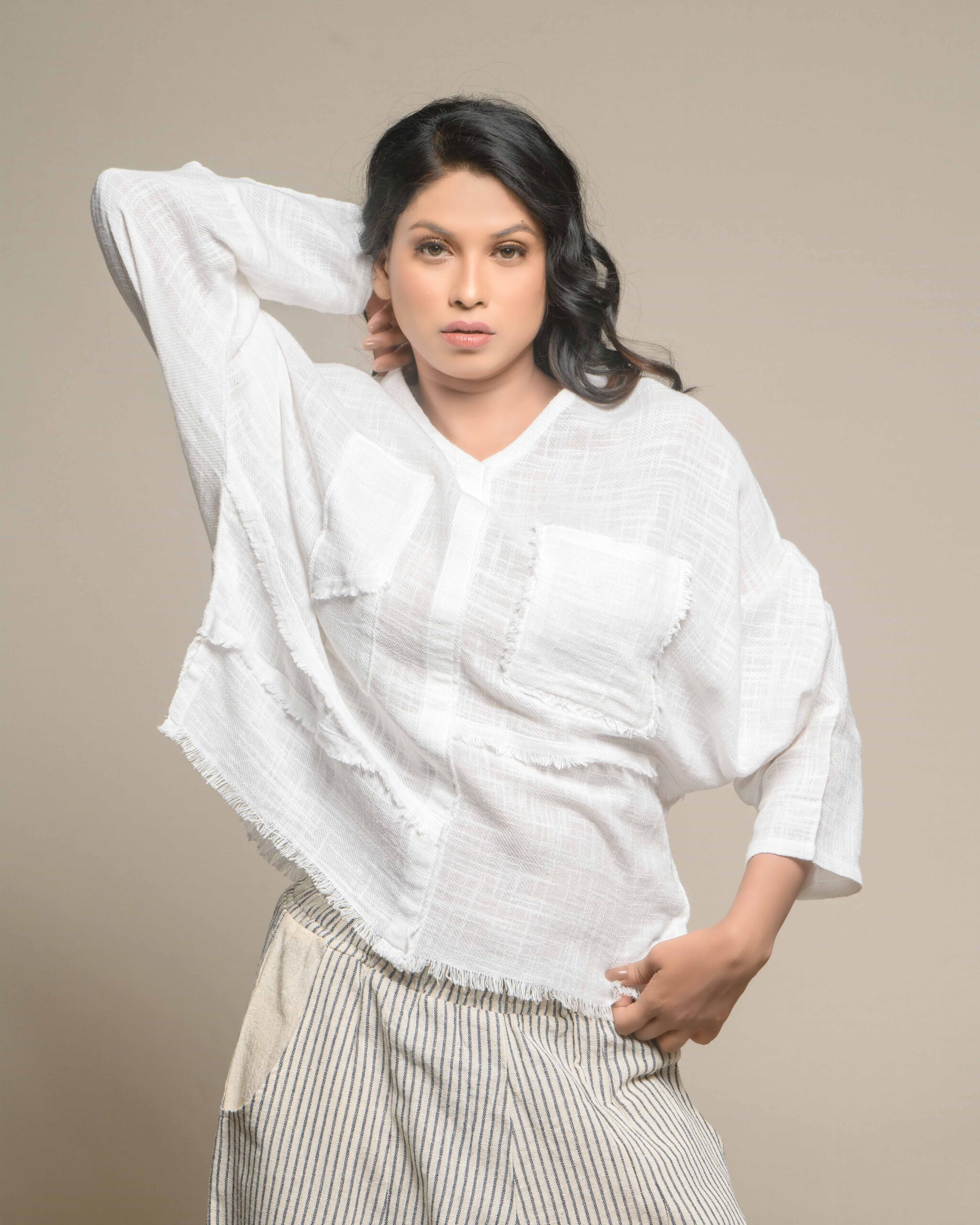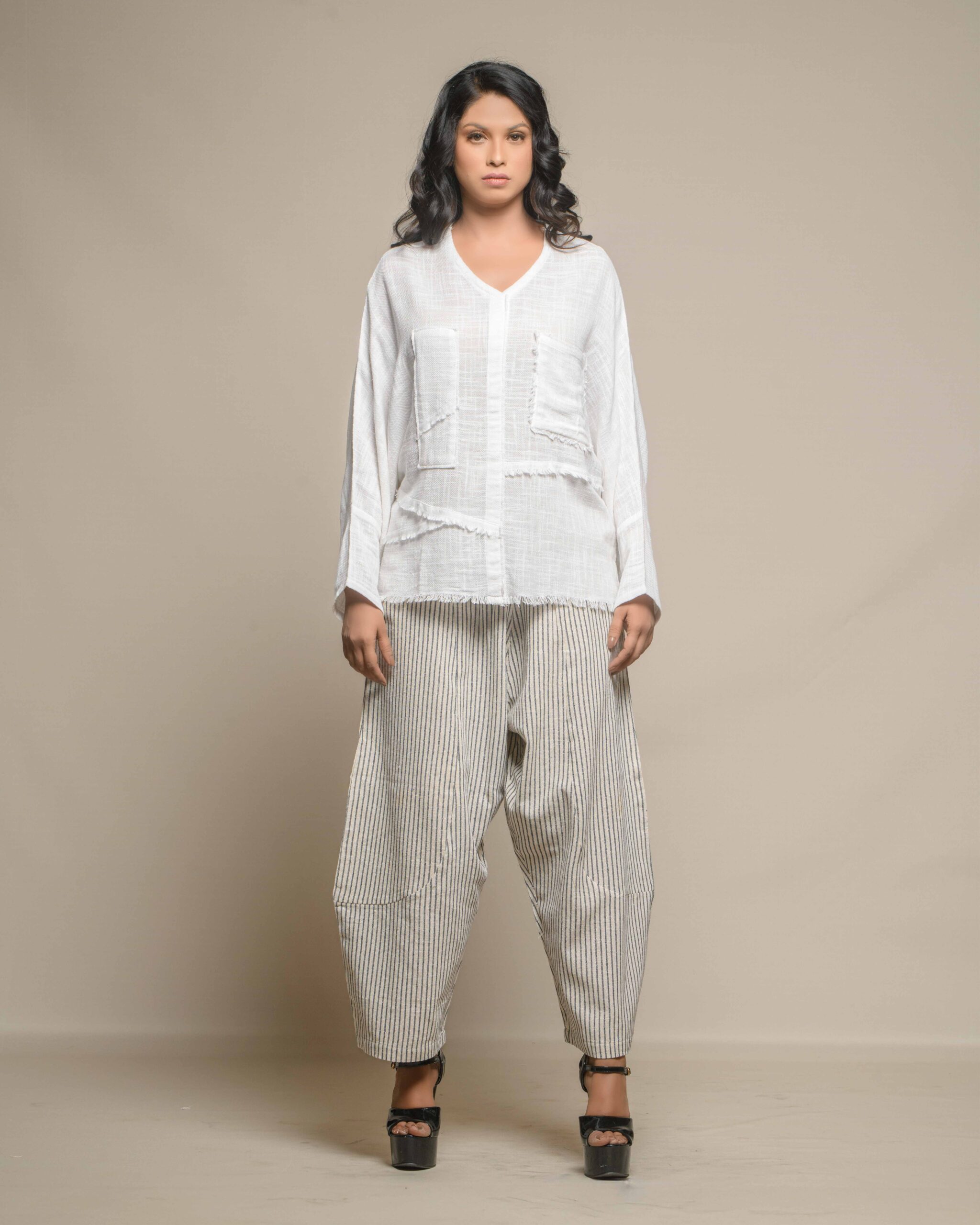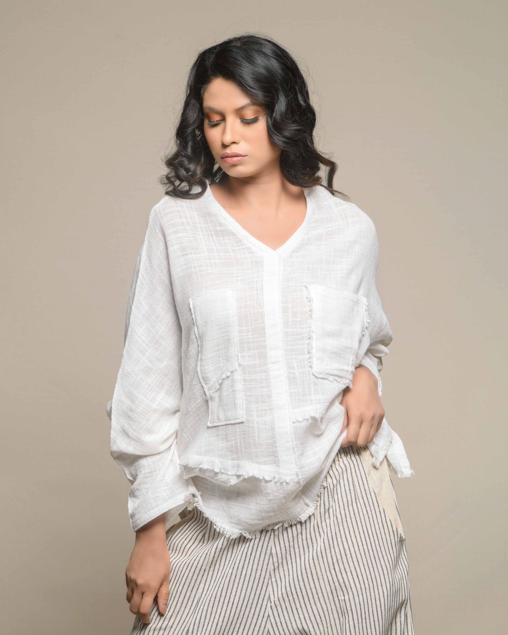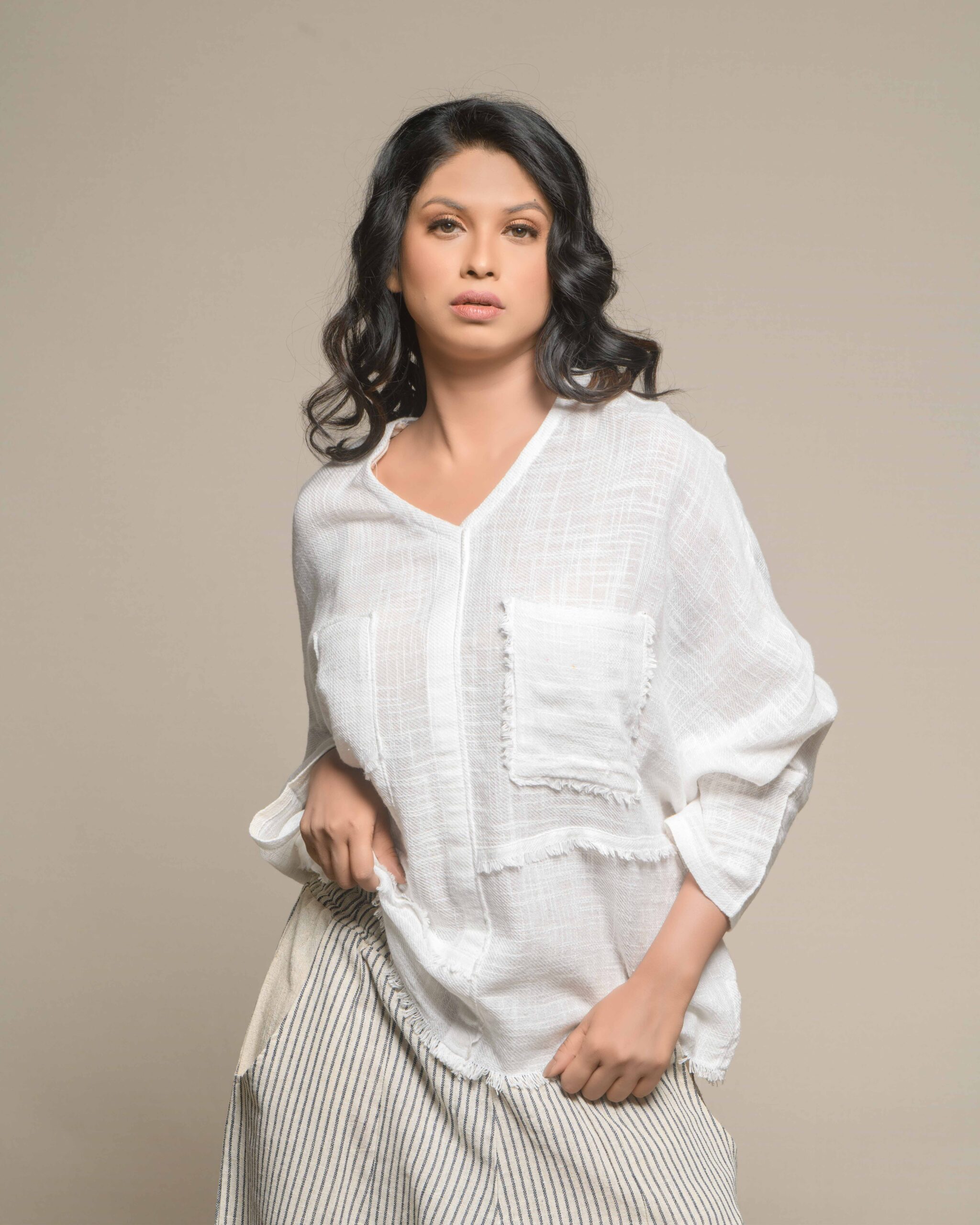 Effortlessly chic, this oversized Boho shirt is crafted from super flowy, light slub Khadi, guaranteeing breathability and comfort. Dyed with certified azo-free dyes, this pure piece embodies the zero-chemical commitment, weaving the artisanās “humane touch” into its trendy, relaxed silhouette.