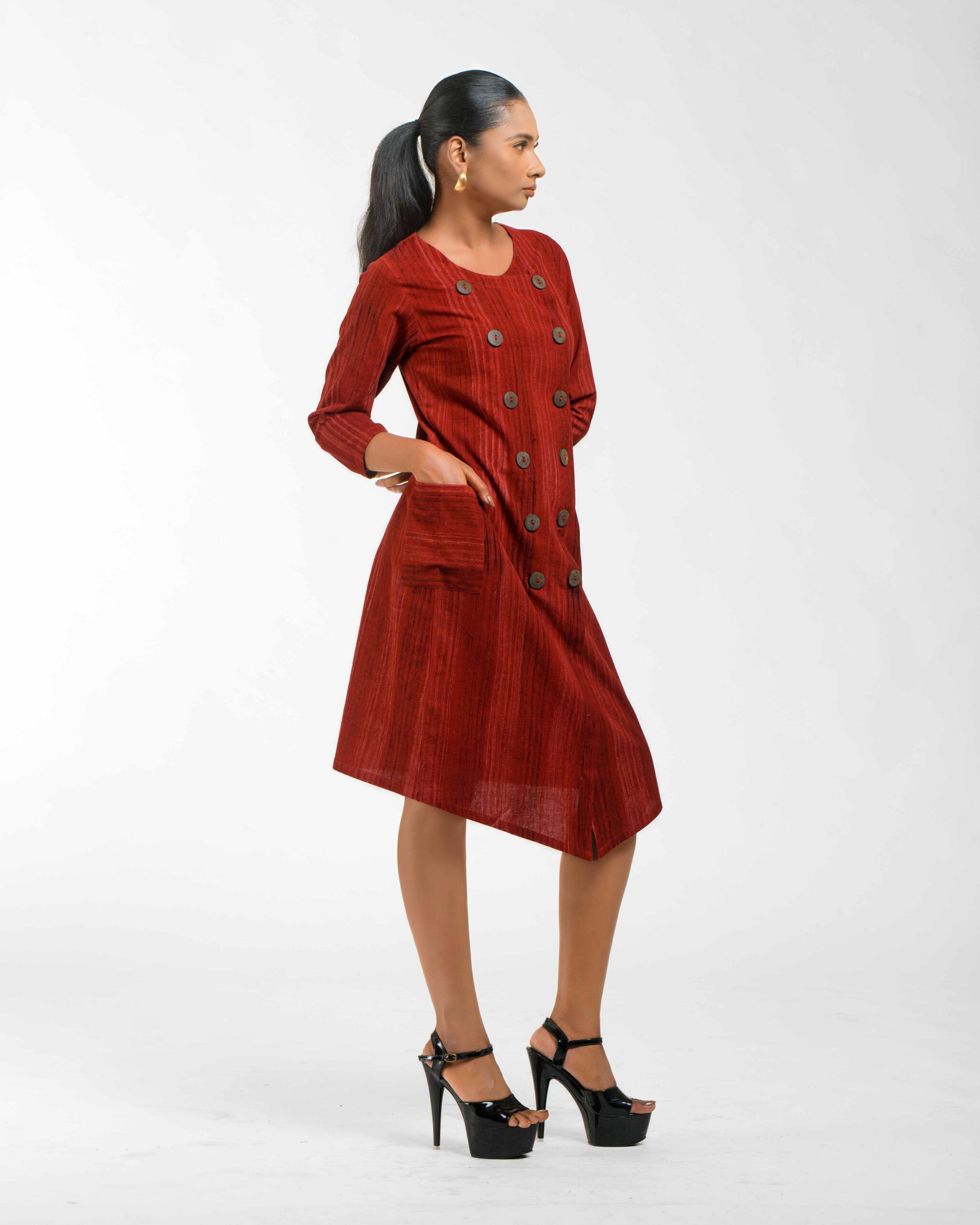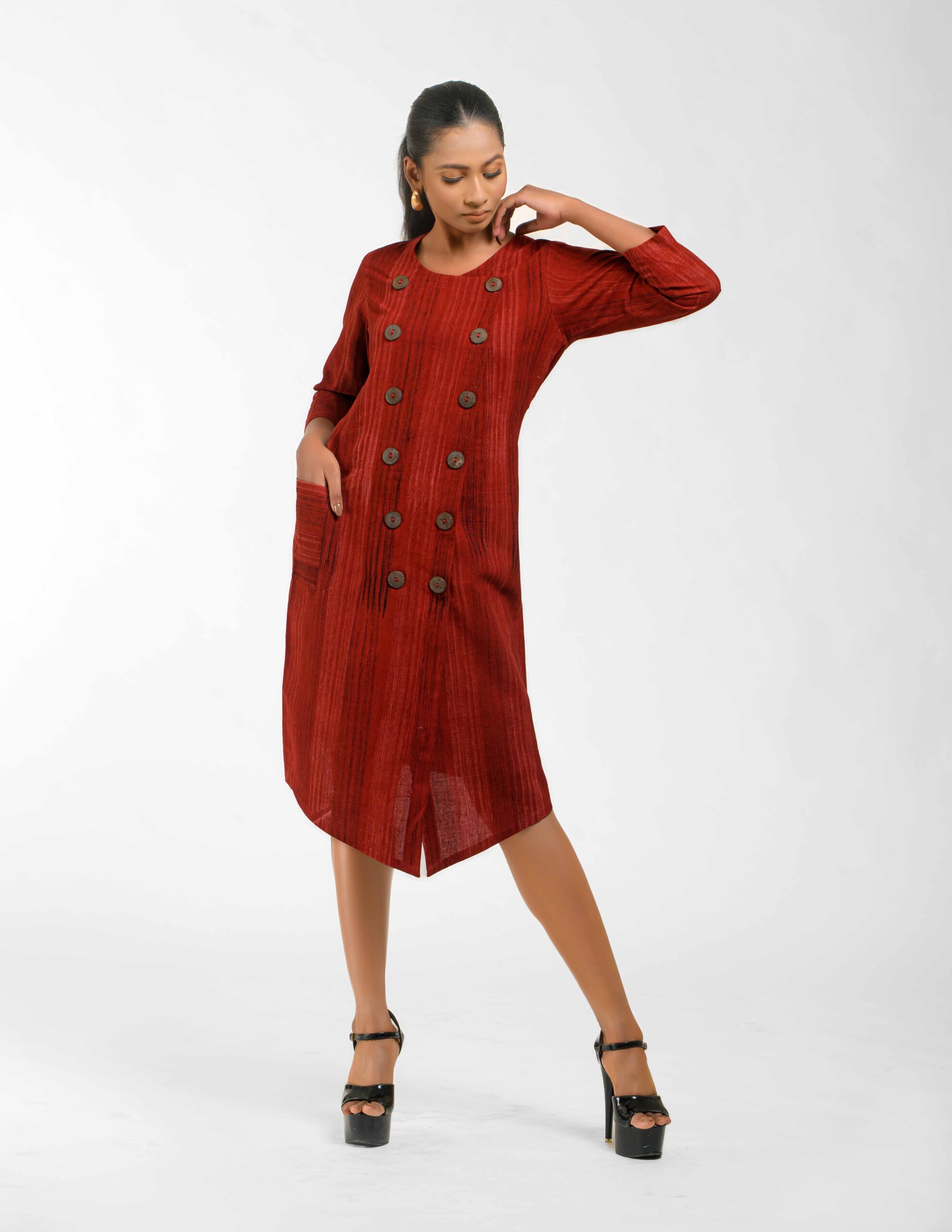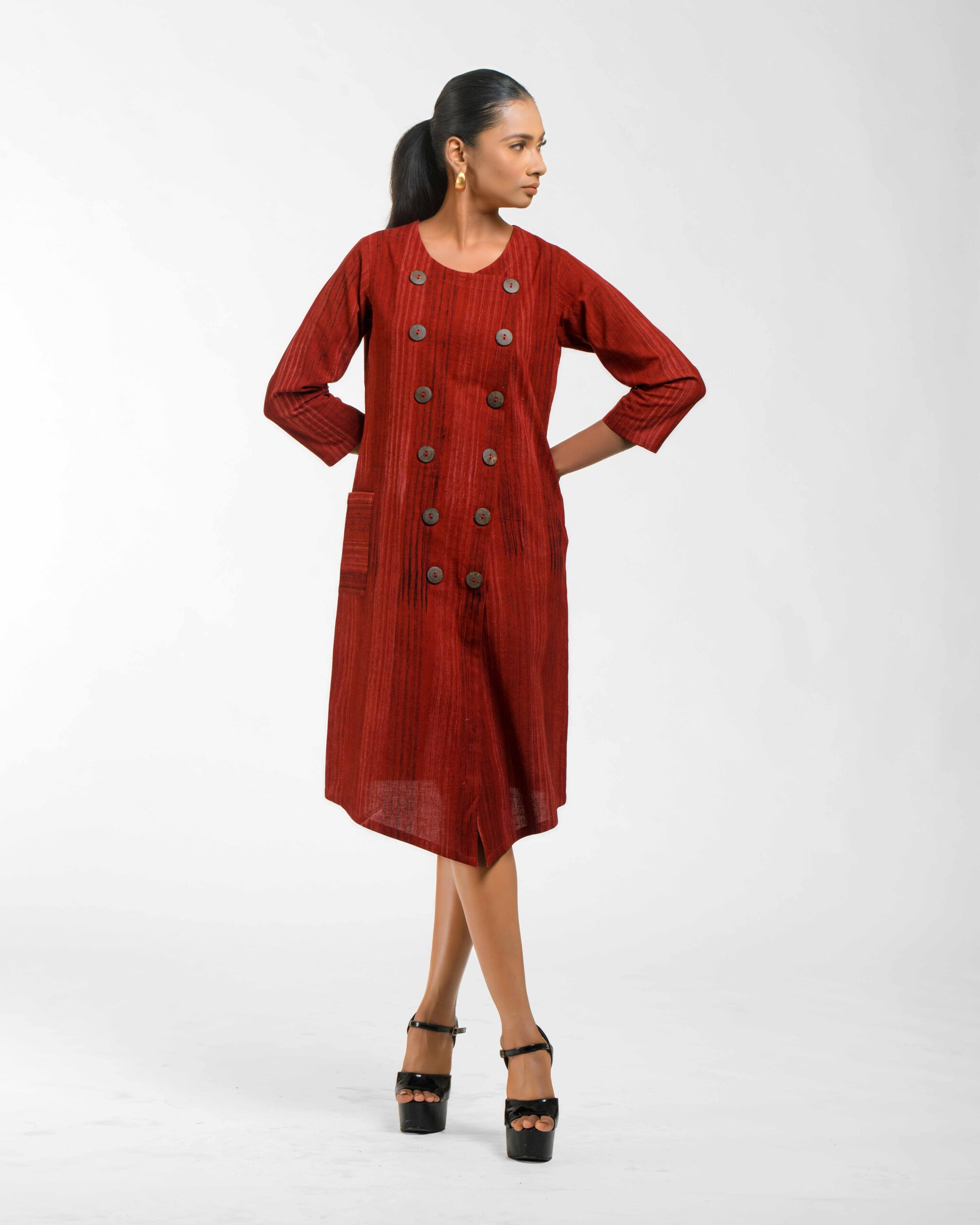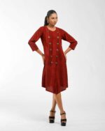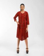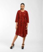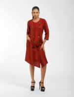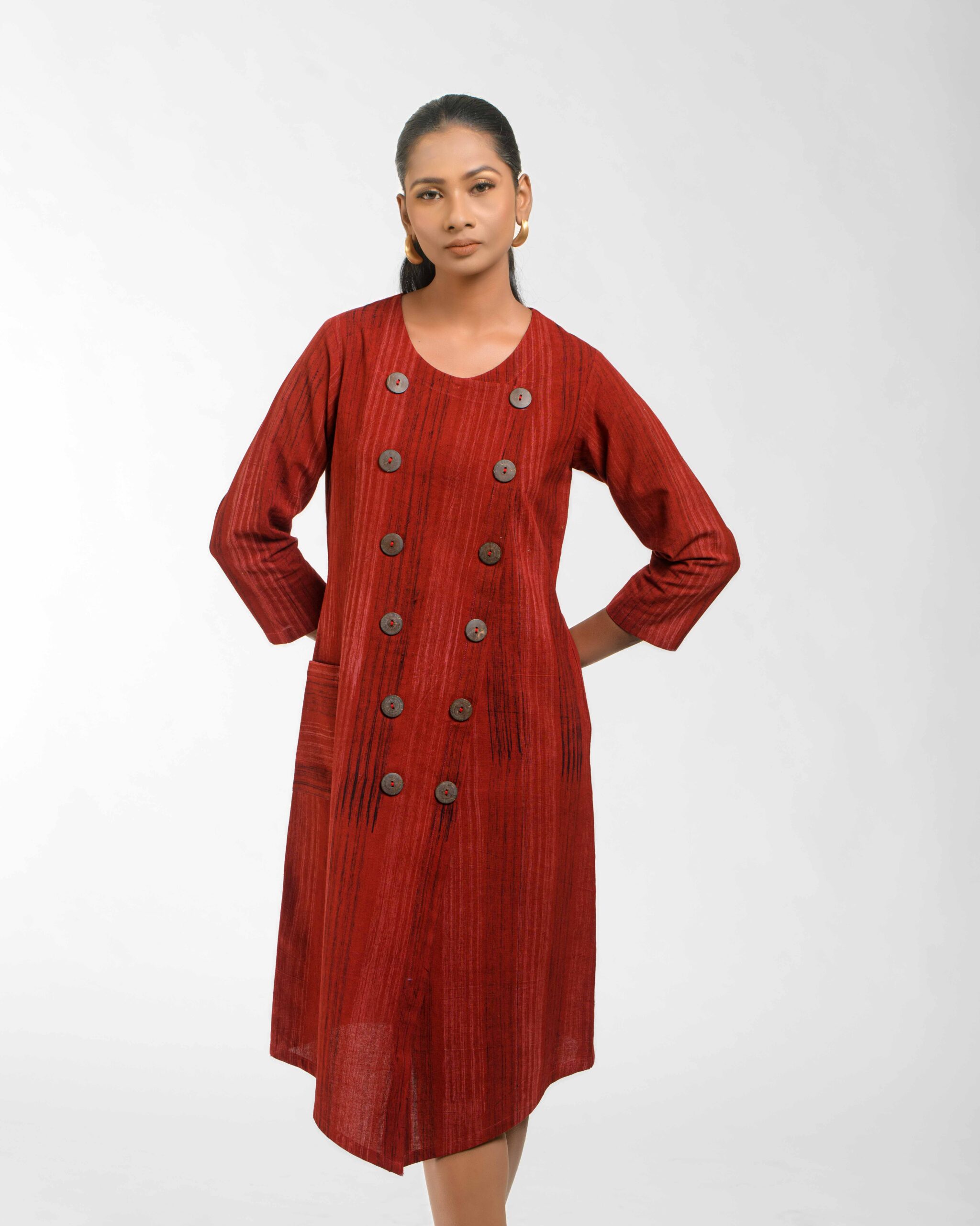 Sophisticated texture: This Khadi tunic is subtly enhanced with hand brush printing, featuring a chic overlap front that secures with natural coconut shell buttons. The design delivers award-winning Indo-Western flair and the guaranteed comfort of pre-treated Khadi. It’s ethical luxury infused with the artisanās “humane touch.