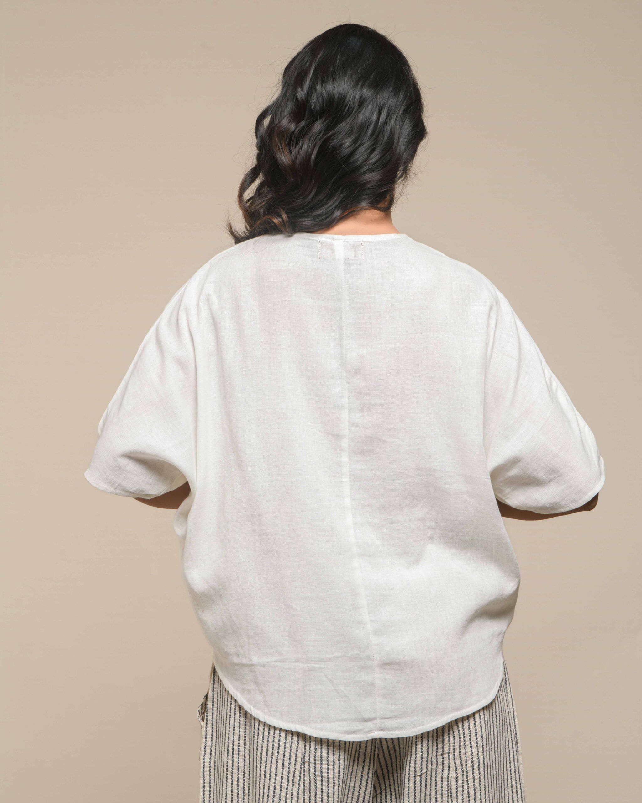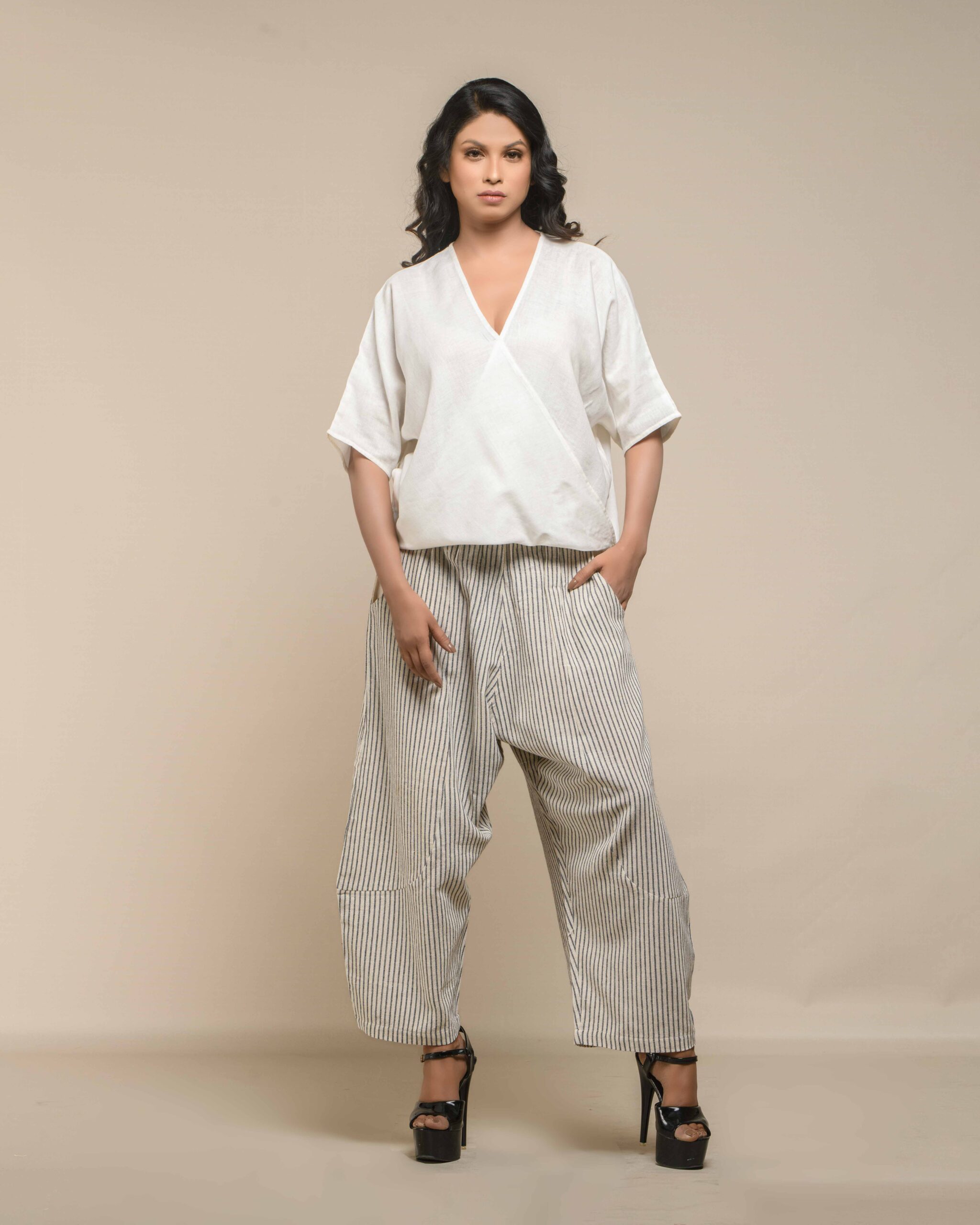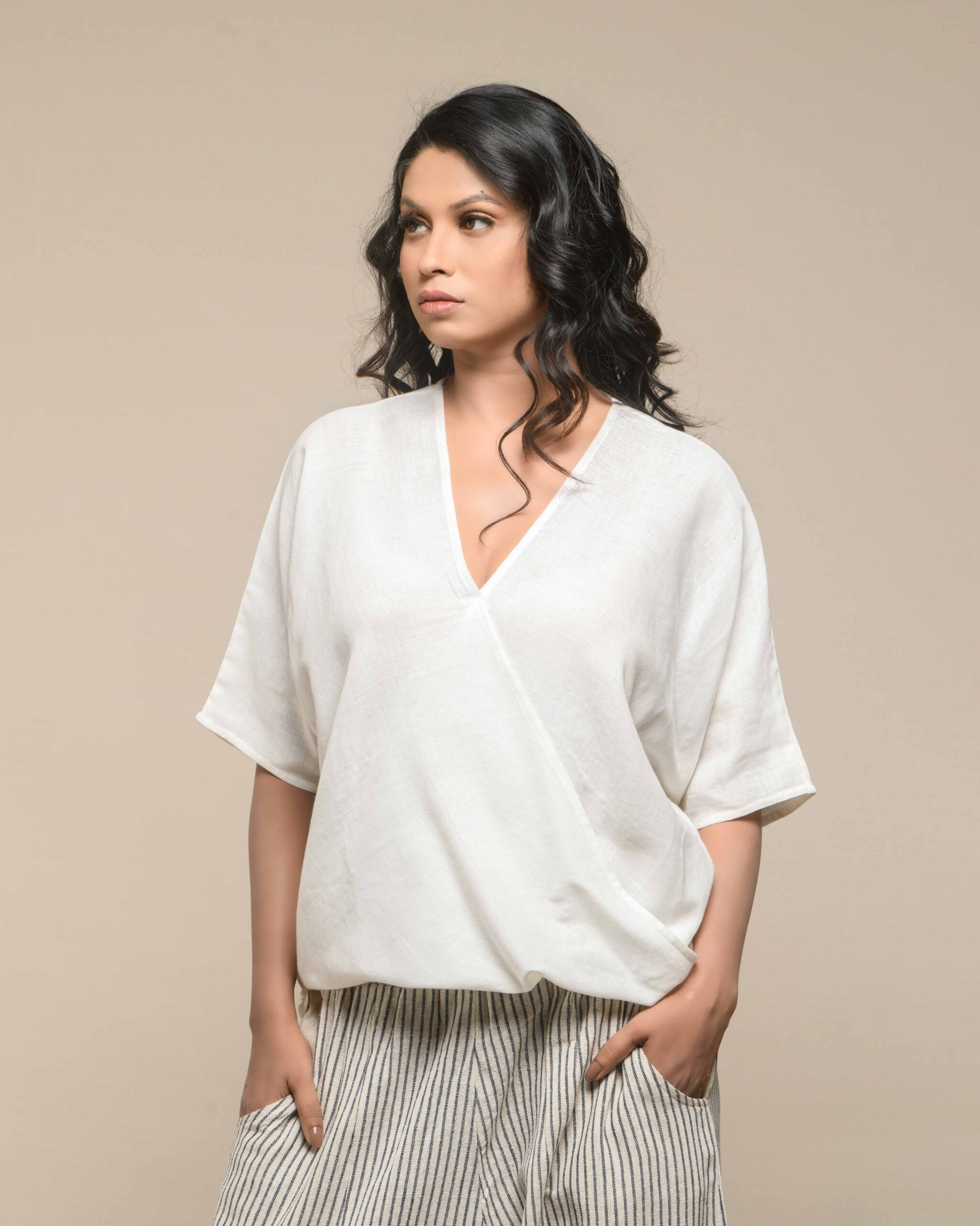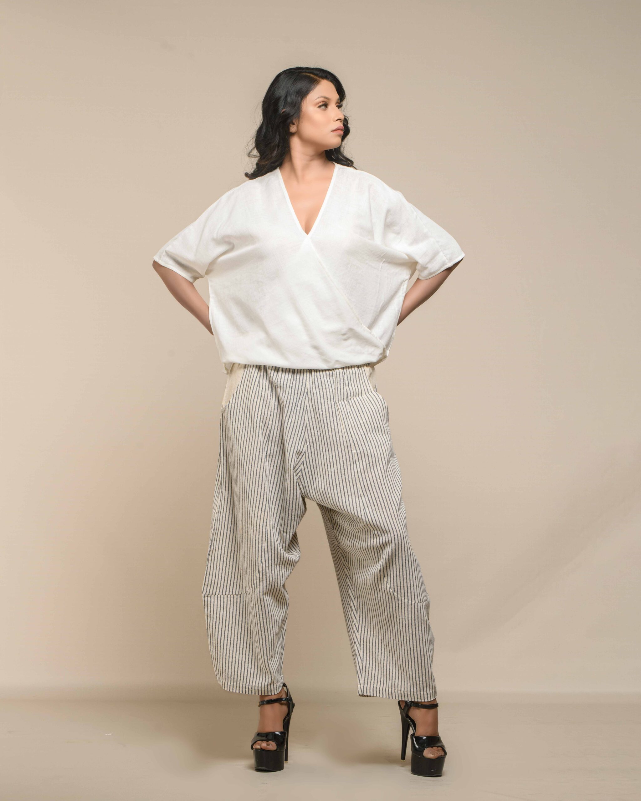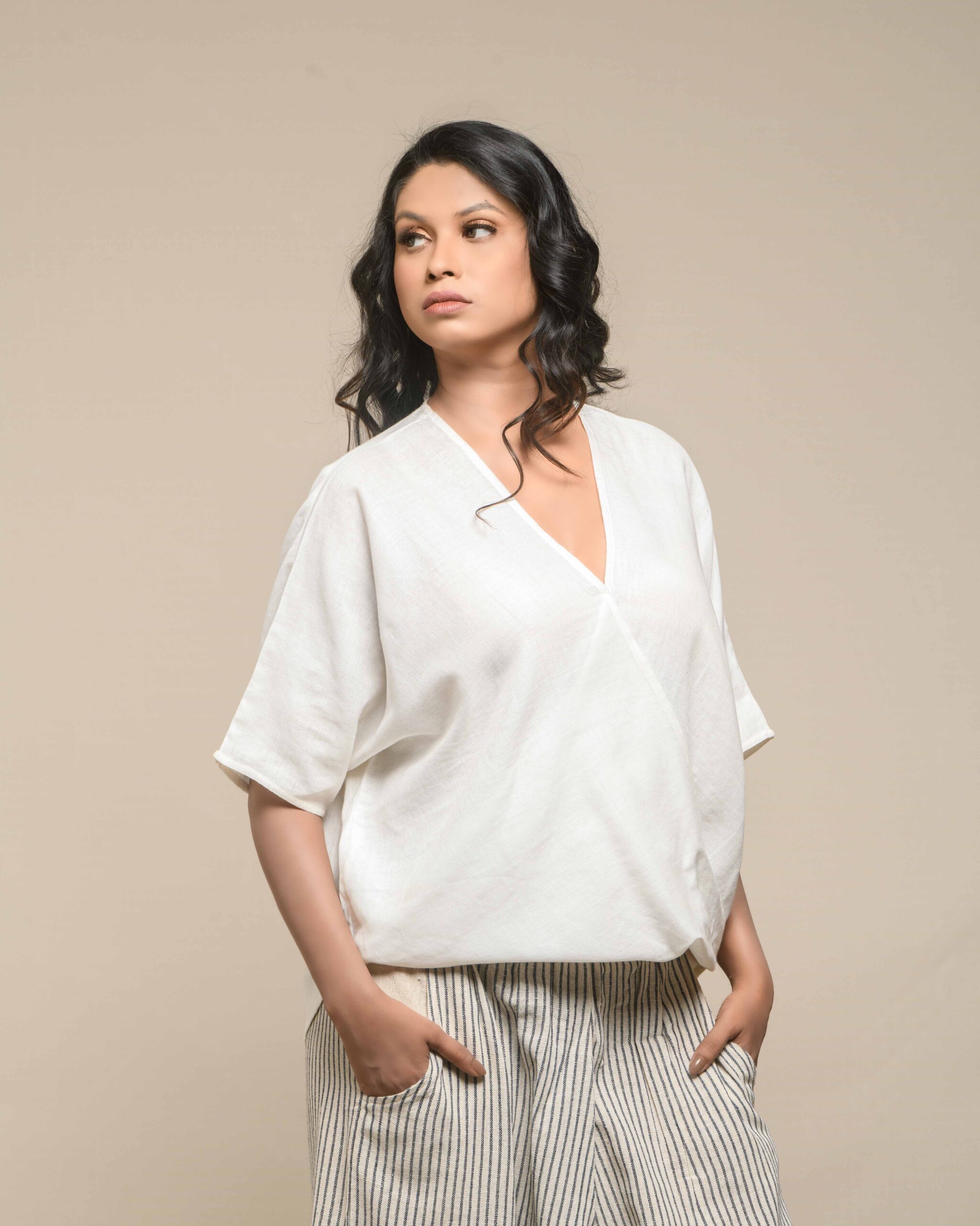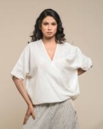 Zero-effort style in sheer, handloom double gauze cotton. The intriguing cross-layered design perfects a modern, Indo-Western fusion for the Gen Next. Lightweight and breathable, this conscious piece embodies the artisan’s “humane touch” in every fiber.