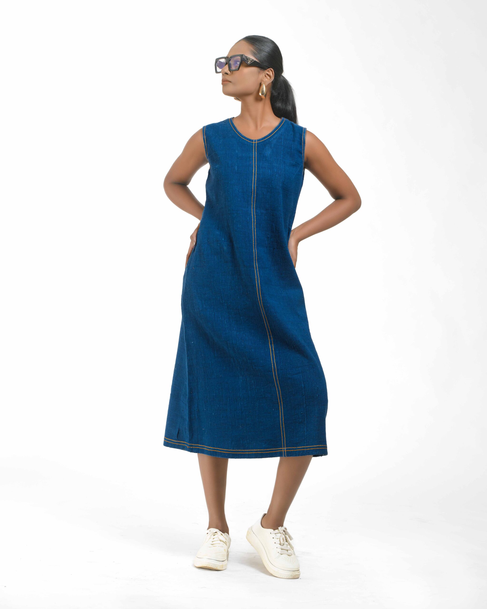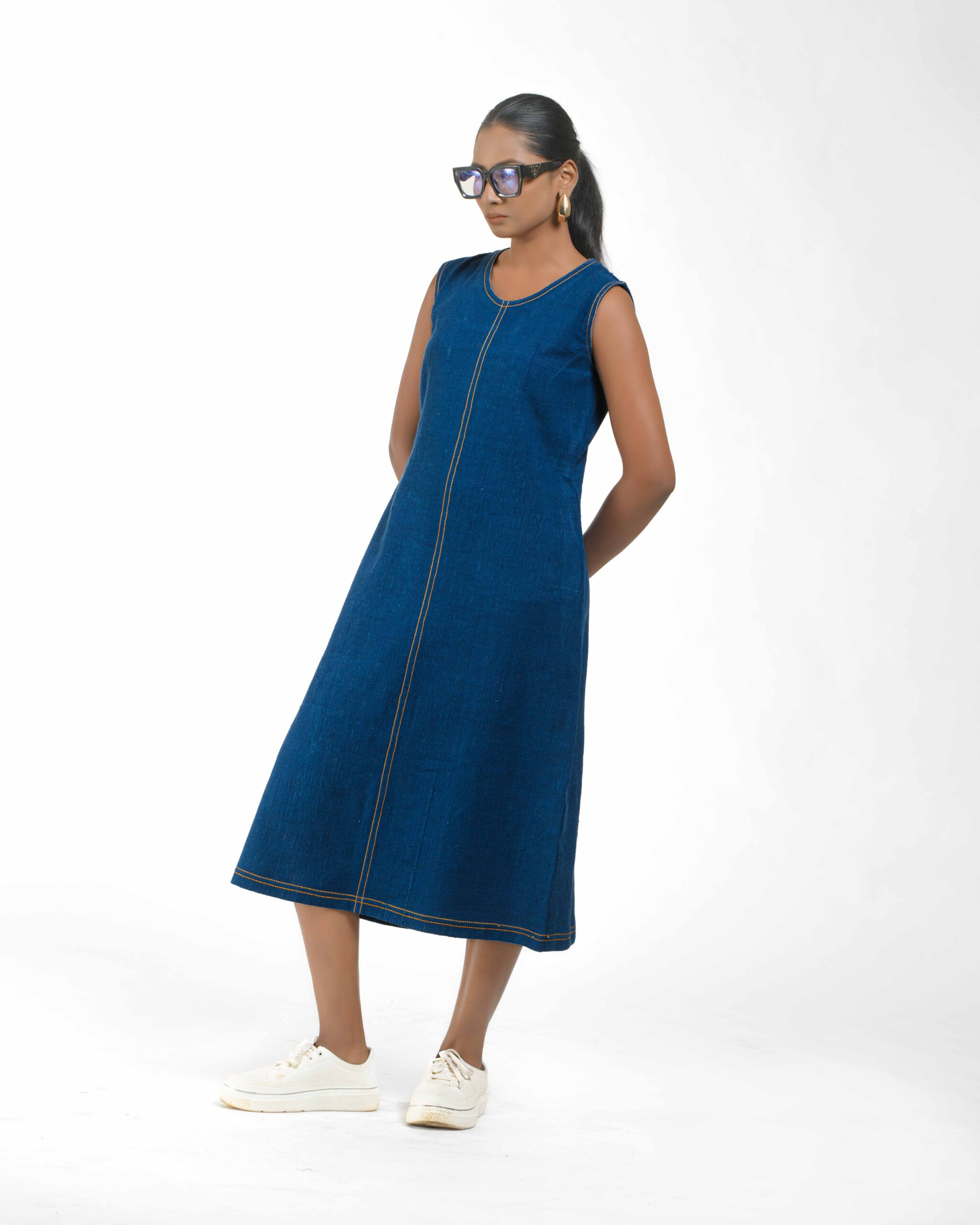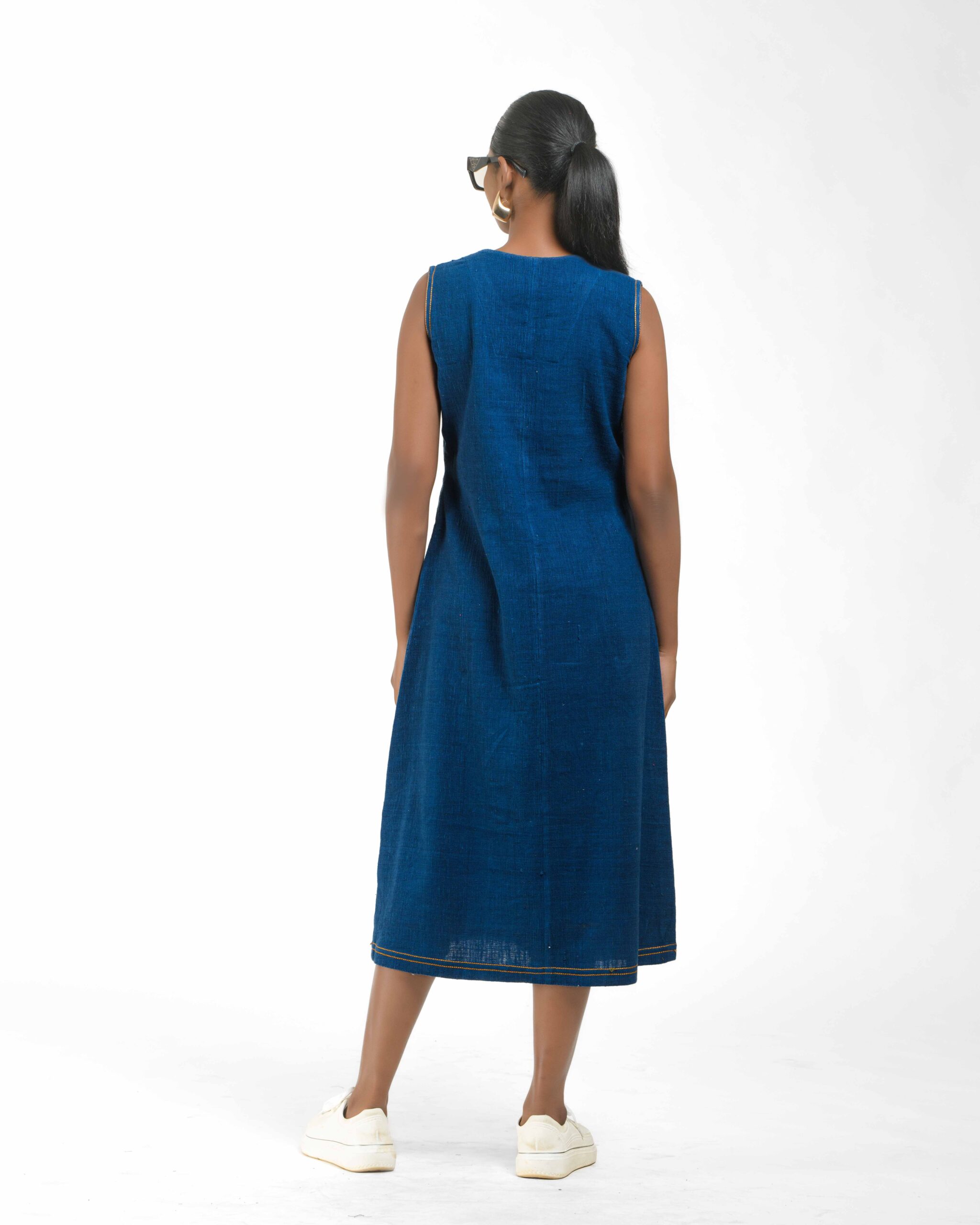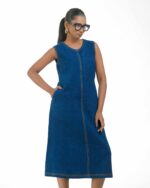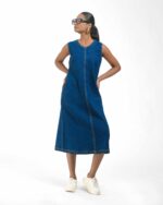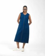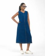 Introducing a uniquely modern concept: a pure Khaddar Khadi dress that perfectly mimics the look of denim. Coloured using ethical Azo-Free dyes, the contemporary silhouette is given its final signature finish by the crisp contrast double stitching. This is a freshly launched piece that offers comfort, sustainability, and a truly original style statement.