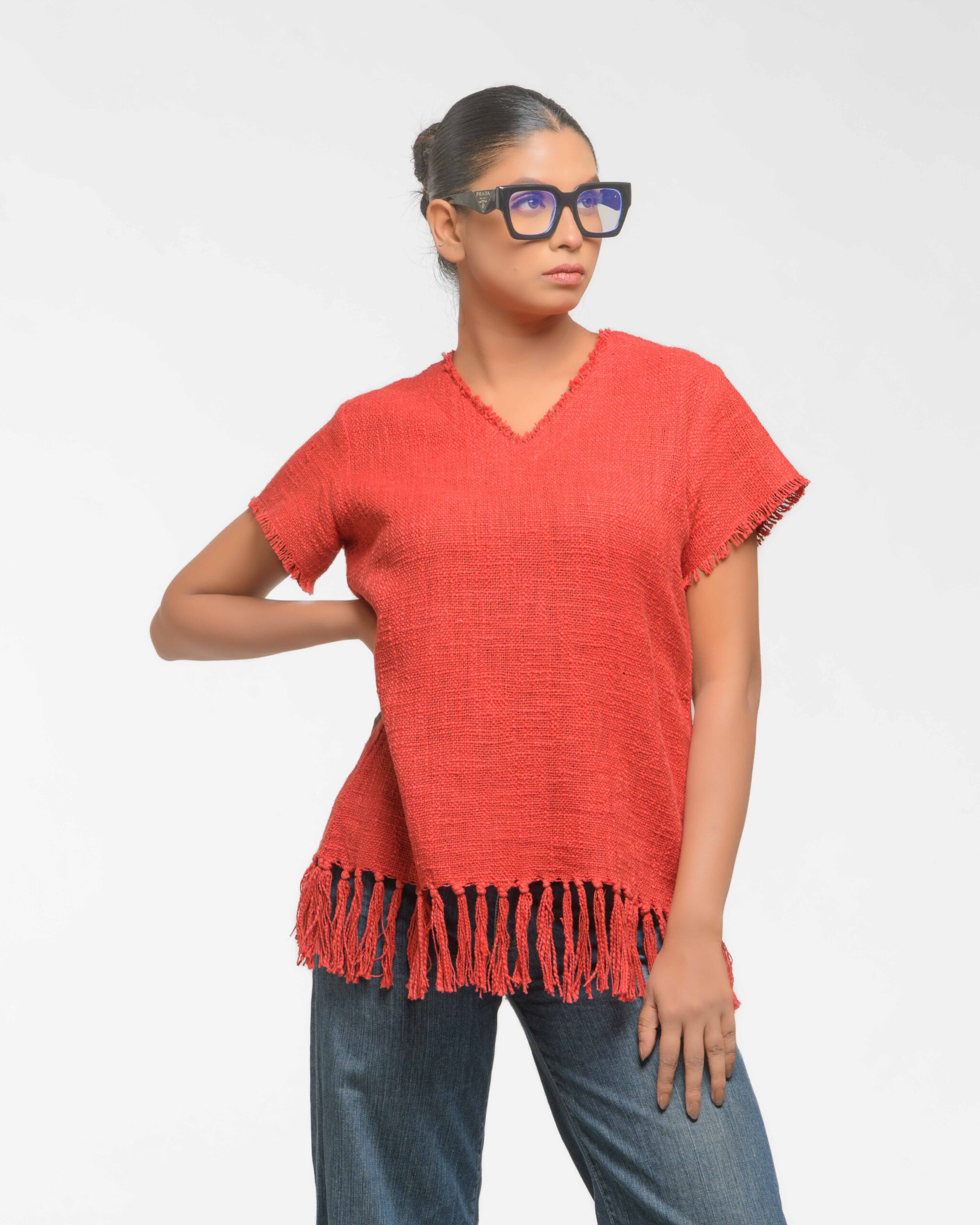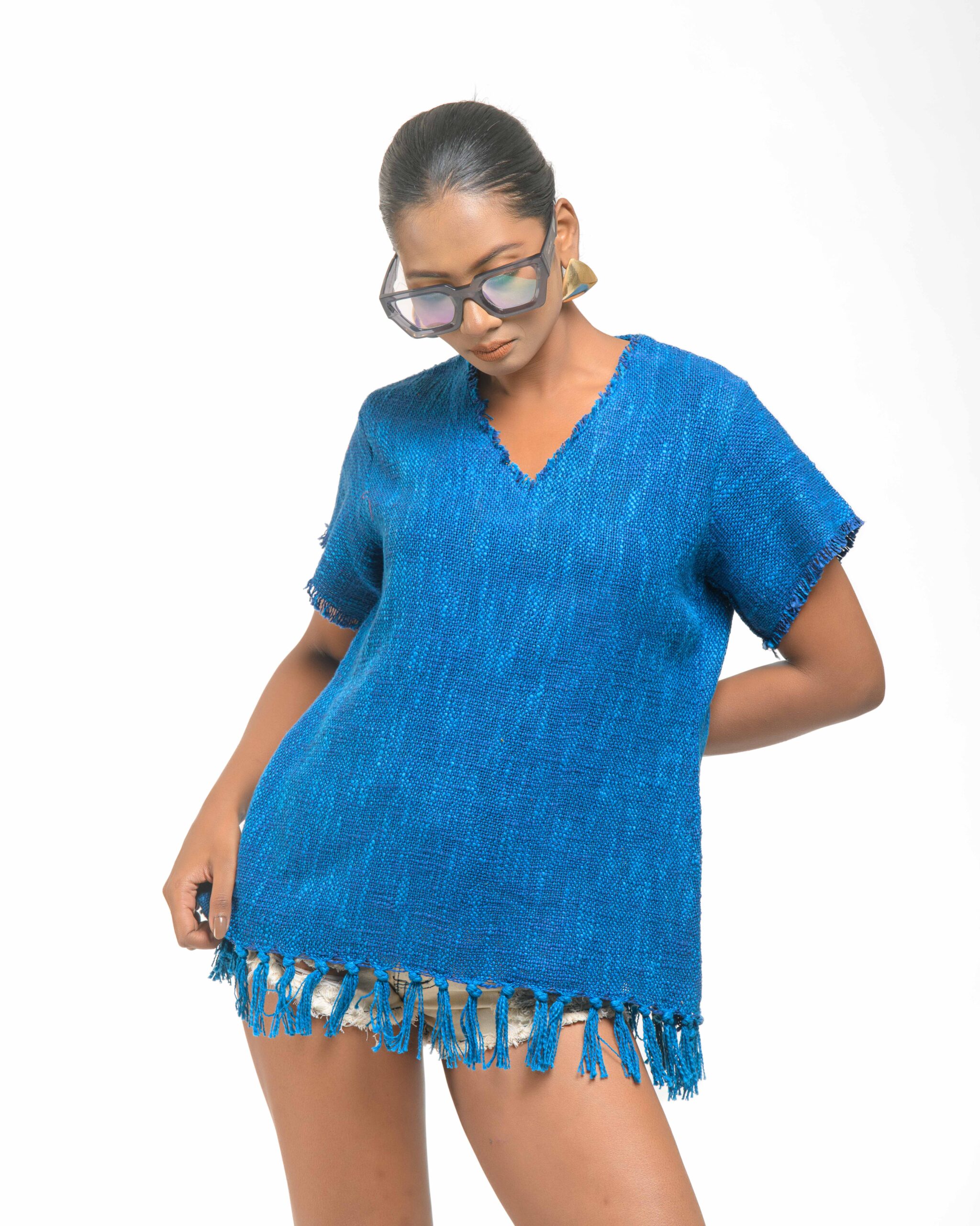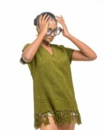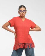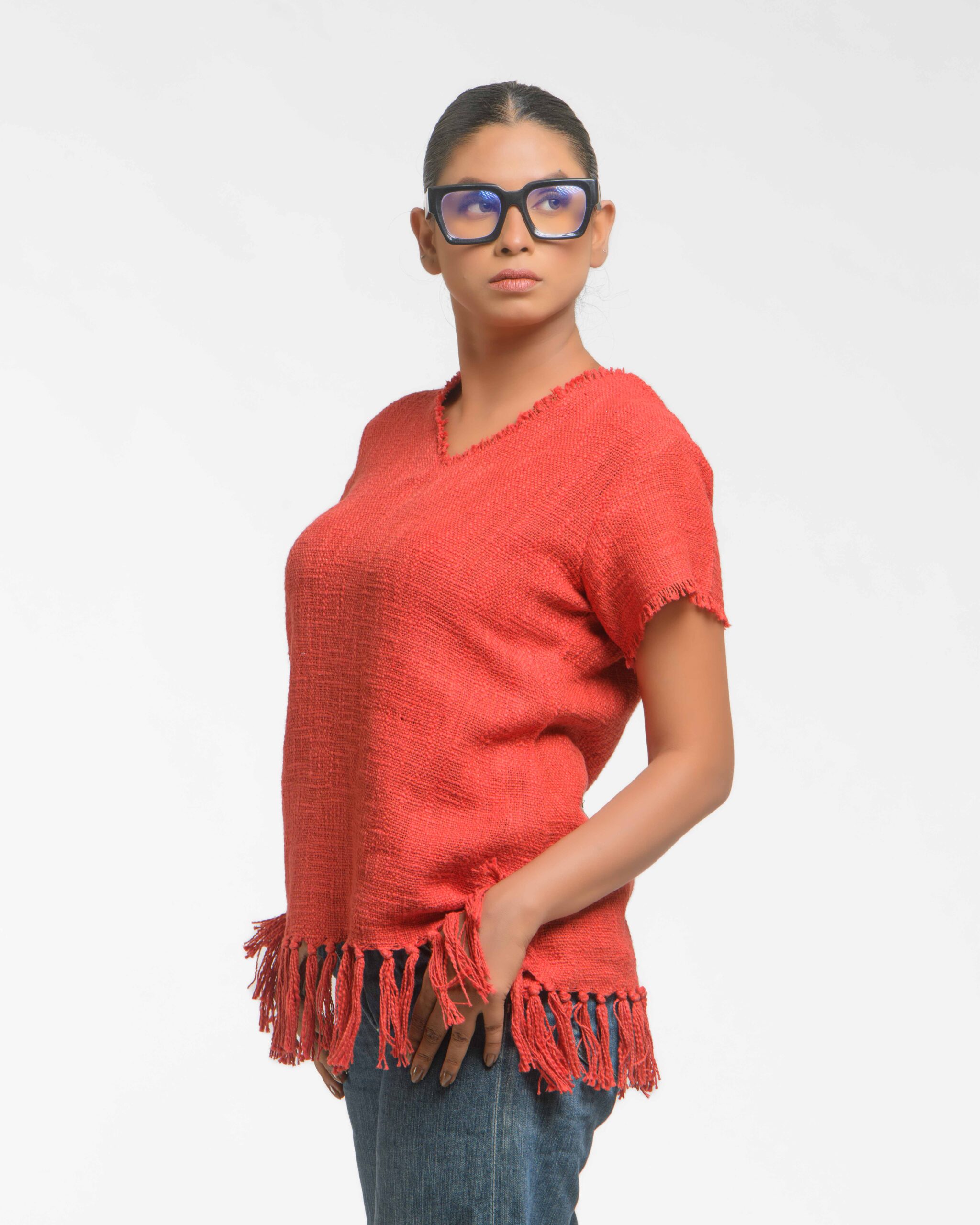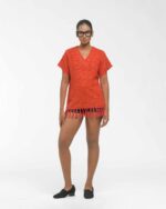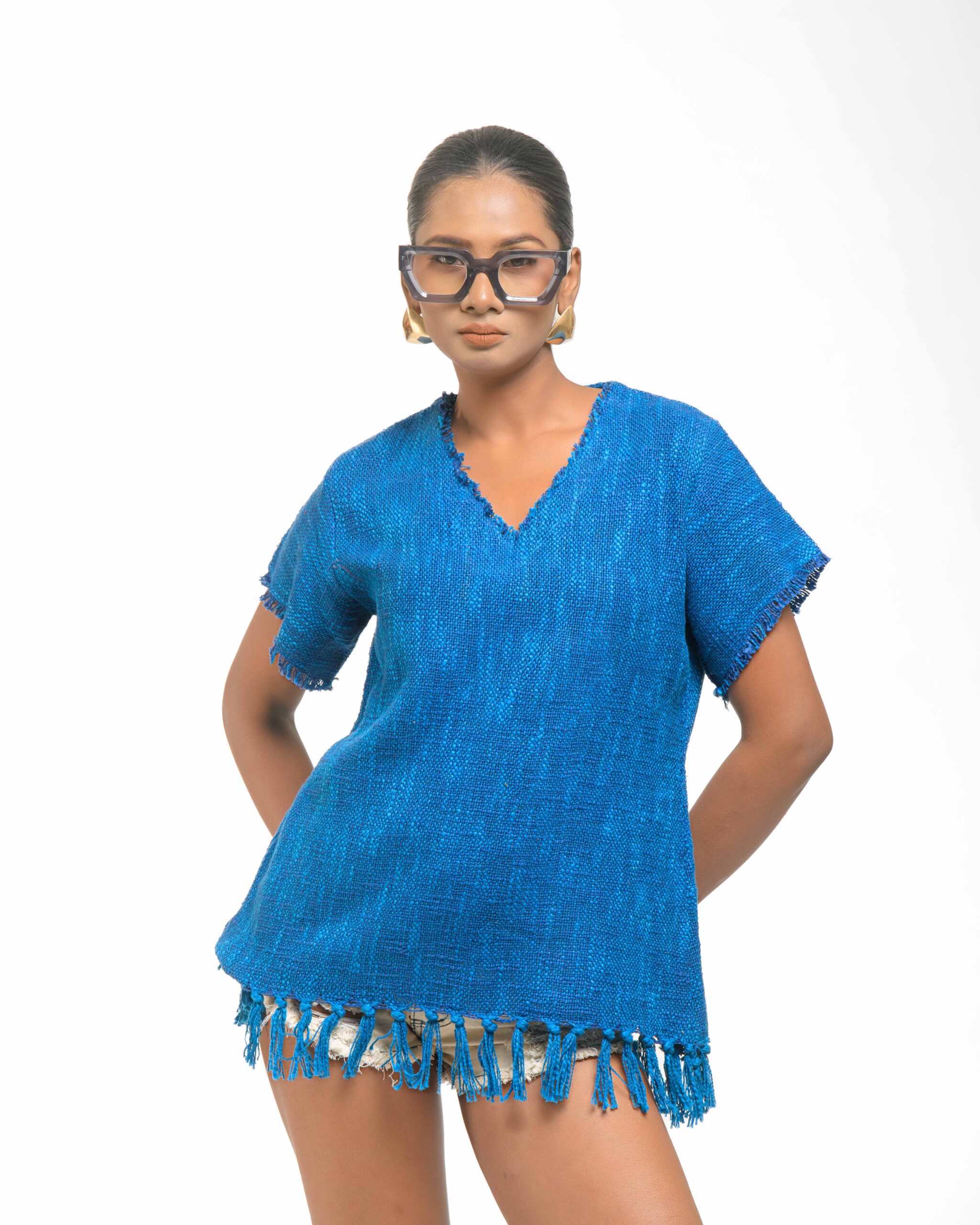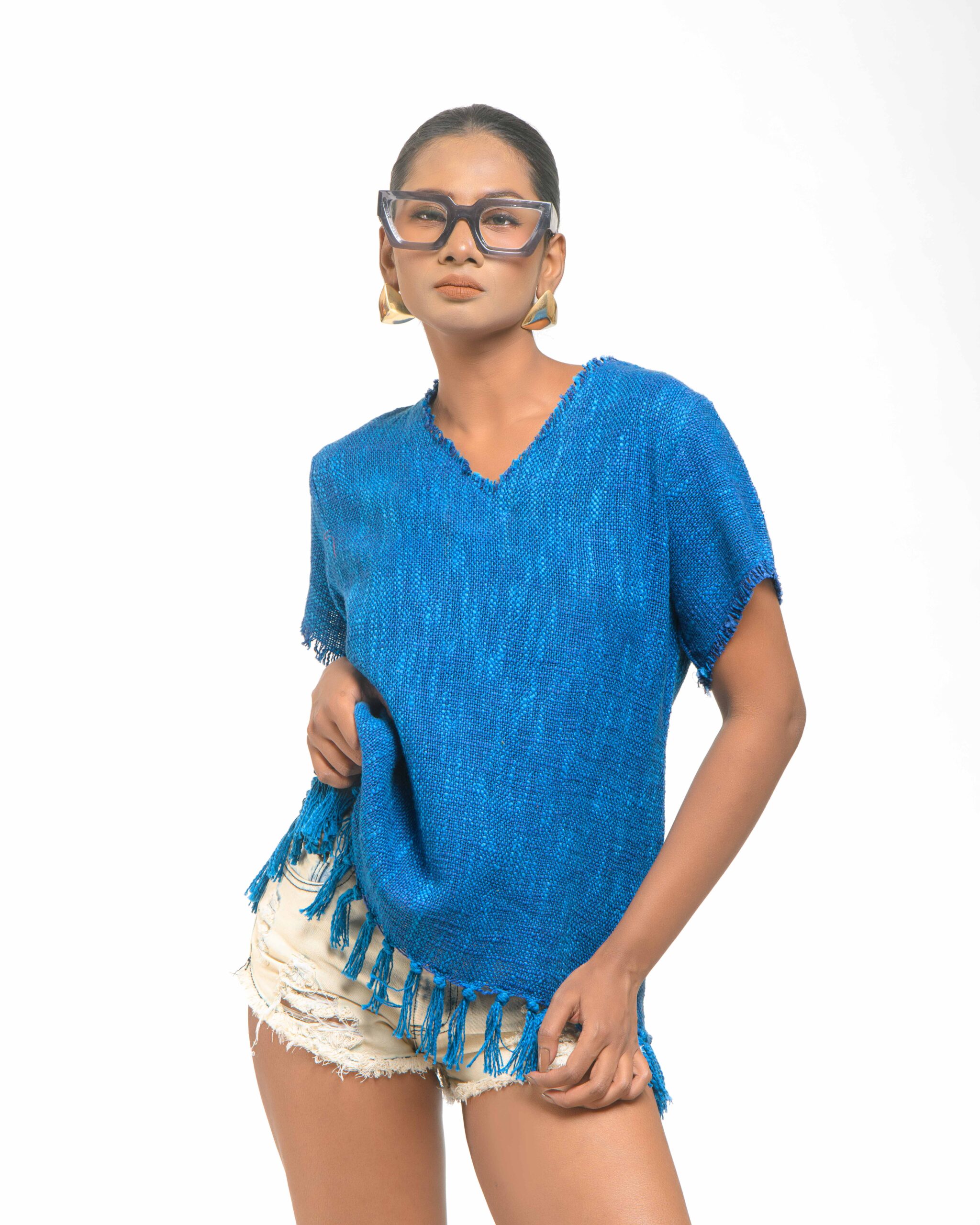 This vibrant, Azo-Free dyed top is made from a uniquely textured fabric, featuring irregular slub yarn and a loose weave for maximum breathability and comfort. Cut in a cool, casual silhouette and finished with playful fringes at the hem, this piece is the ultimate ethical statement for effortless, radiant style.