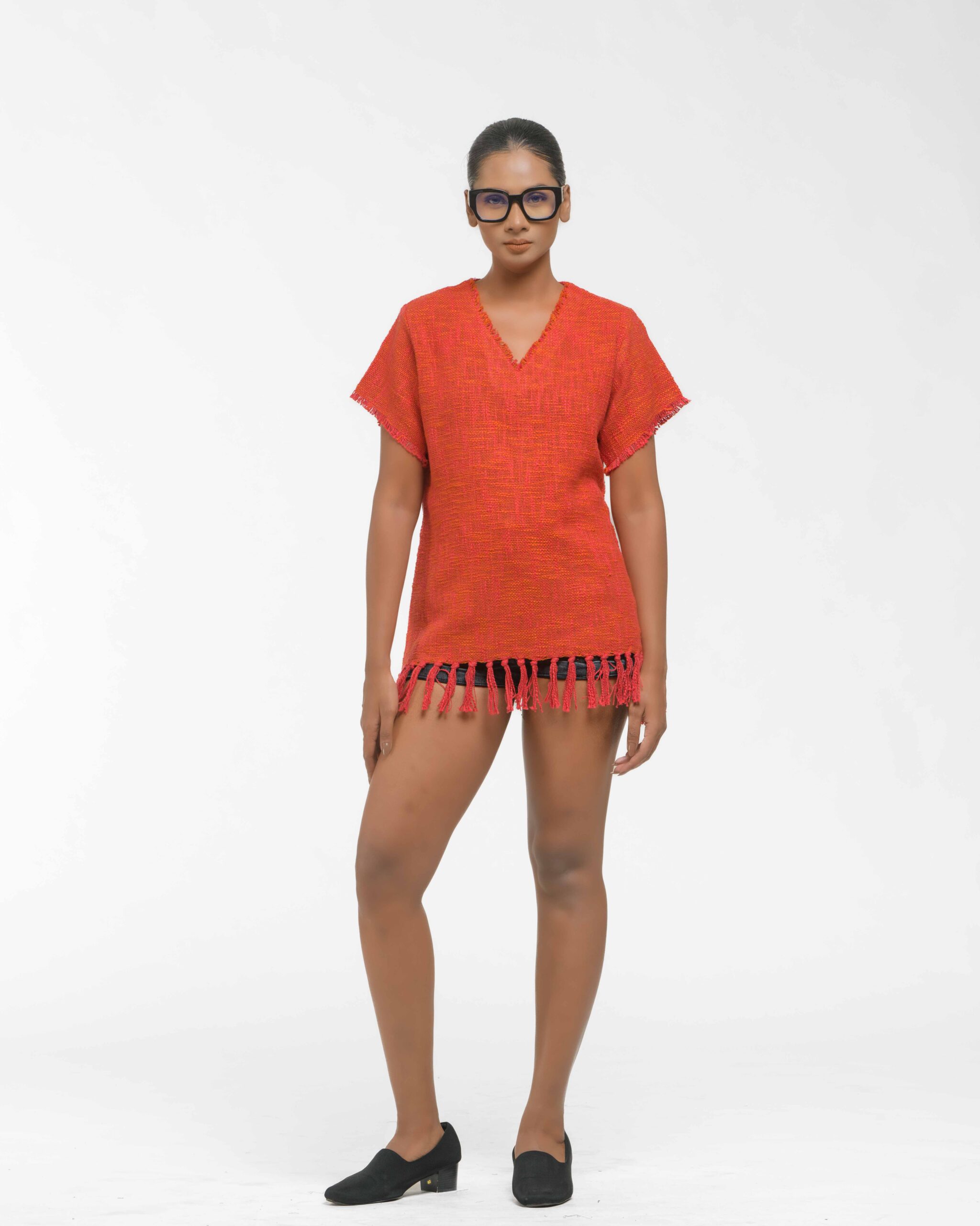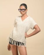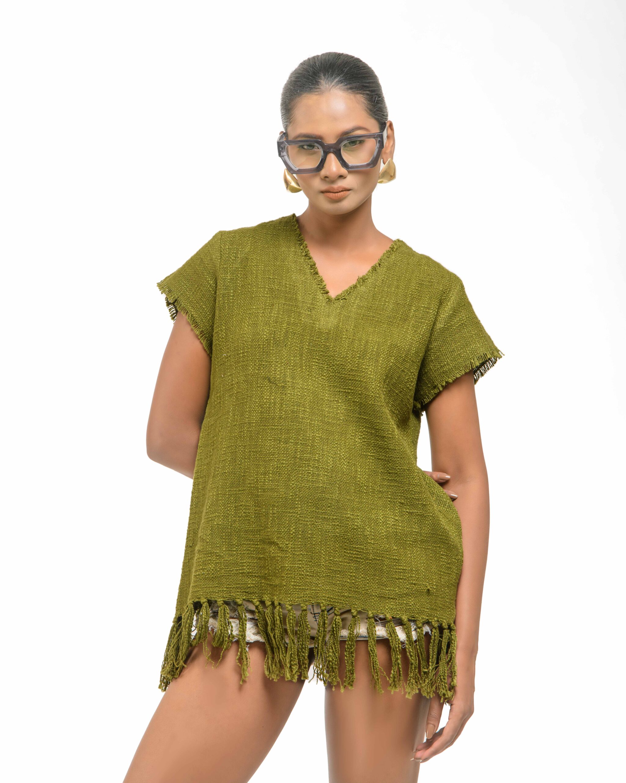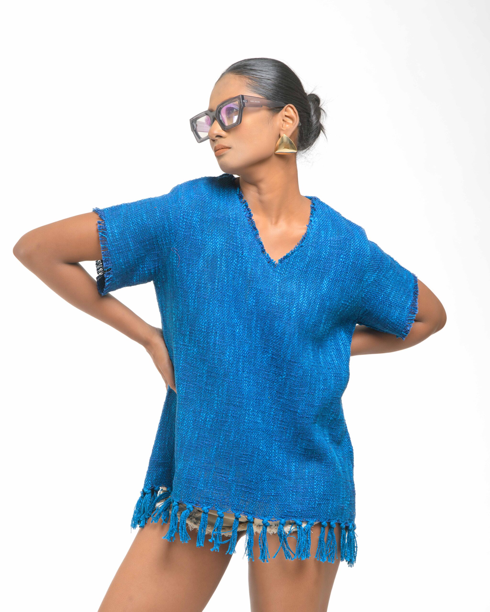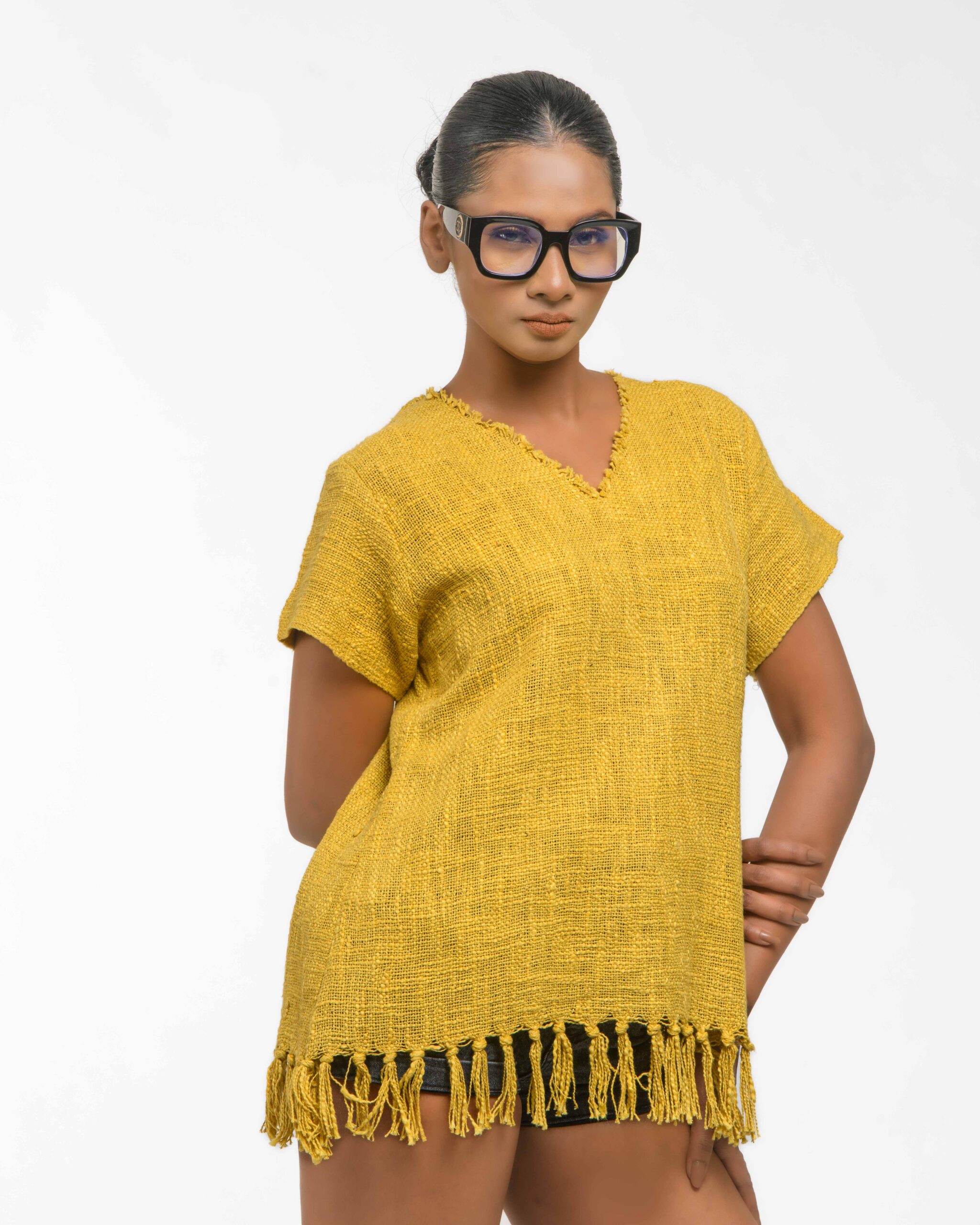 This vibrant, Azo-Free dyed top is made from a uniquely textured fabric, featuring irregular slub yarn and a loose weave for maximum breathability and comfort. Cut in a cool, casual silhouette and finished with playful fringes at the hem, this piece is the ultimate ethical statement for effortless, radiant style.