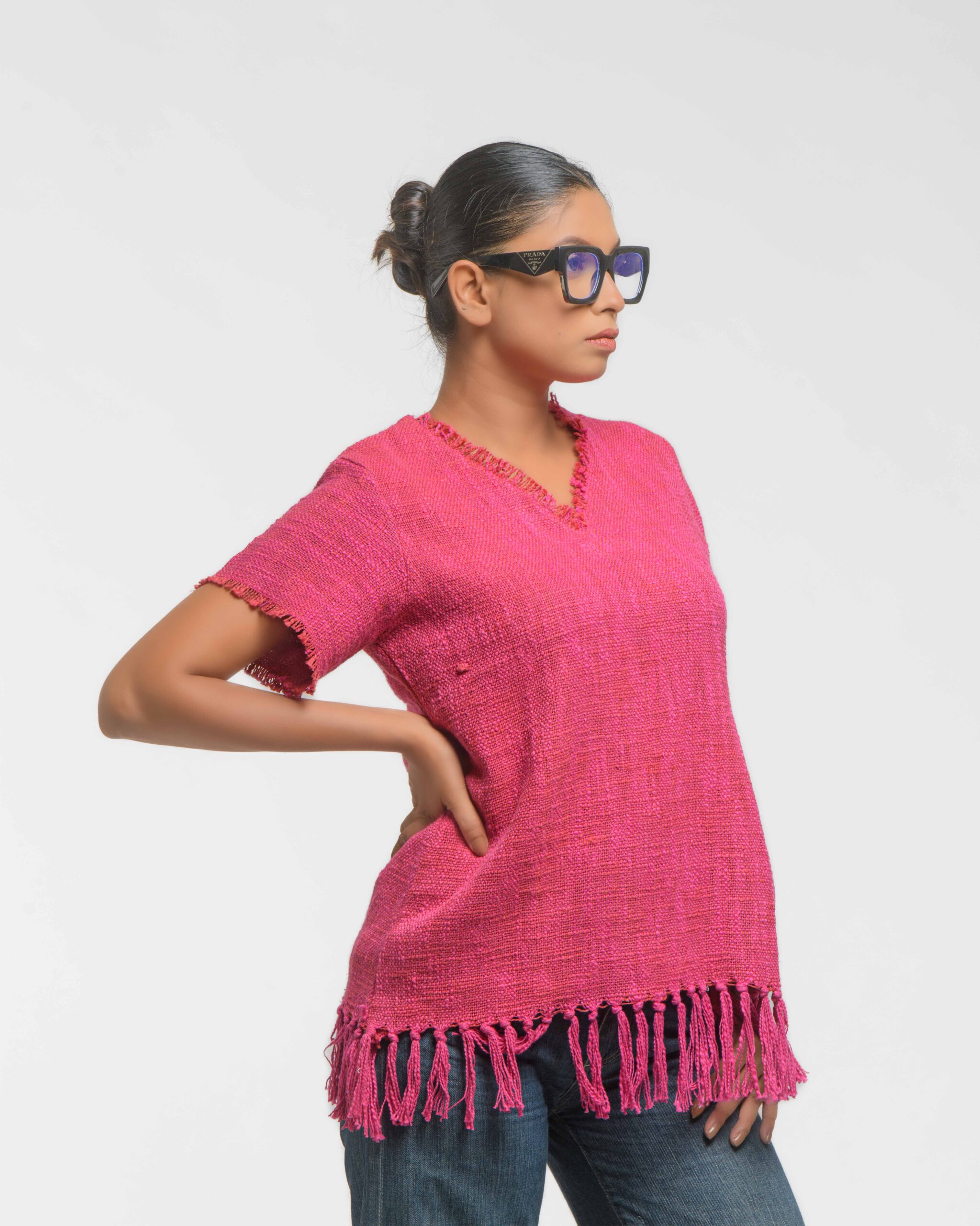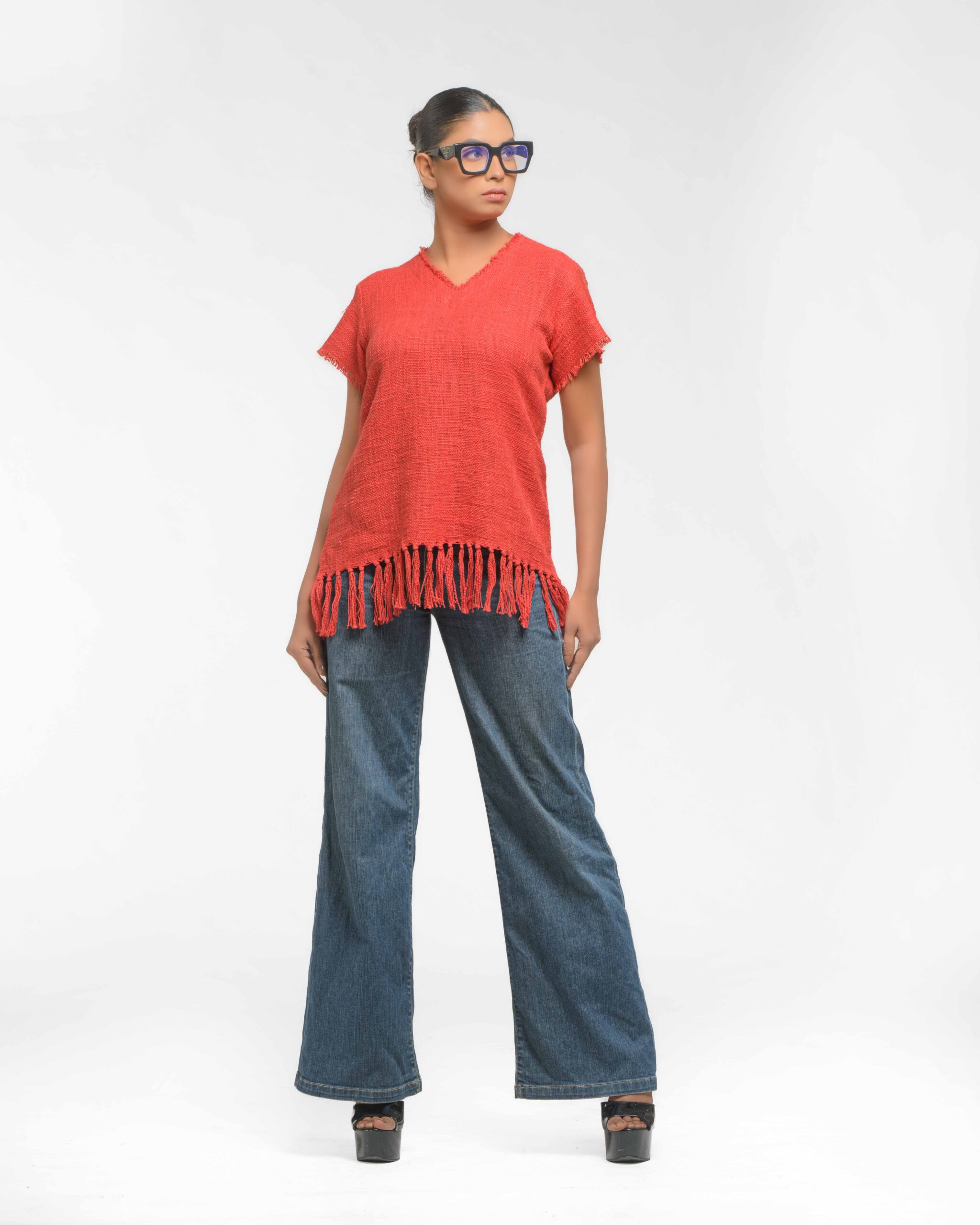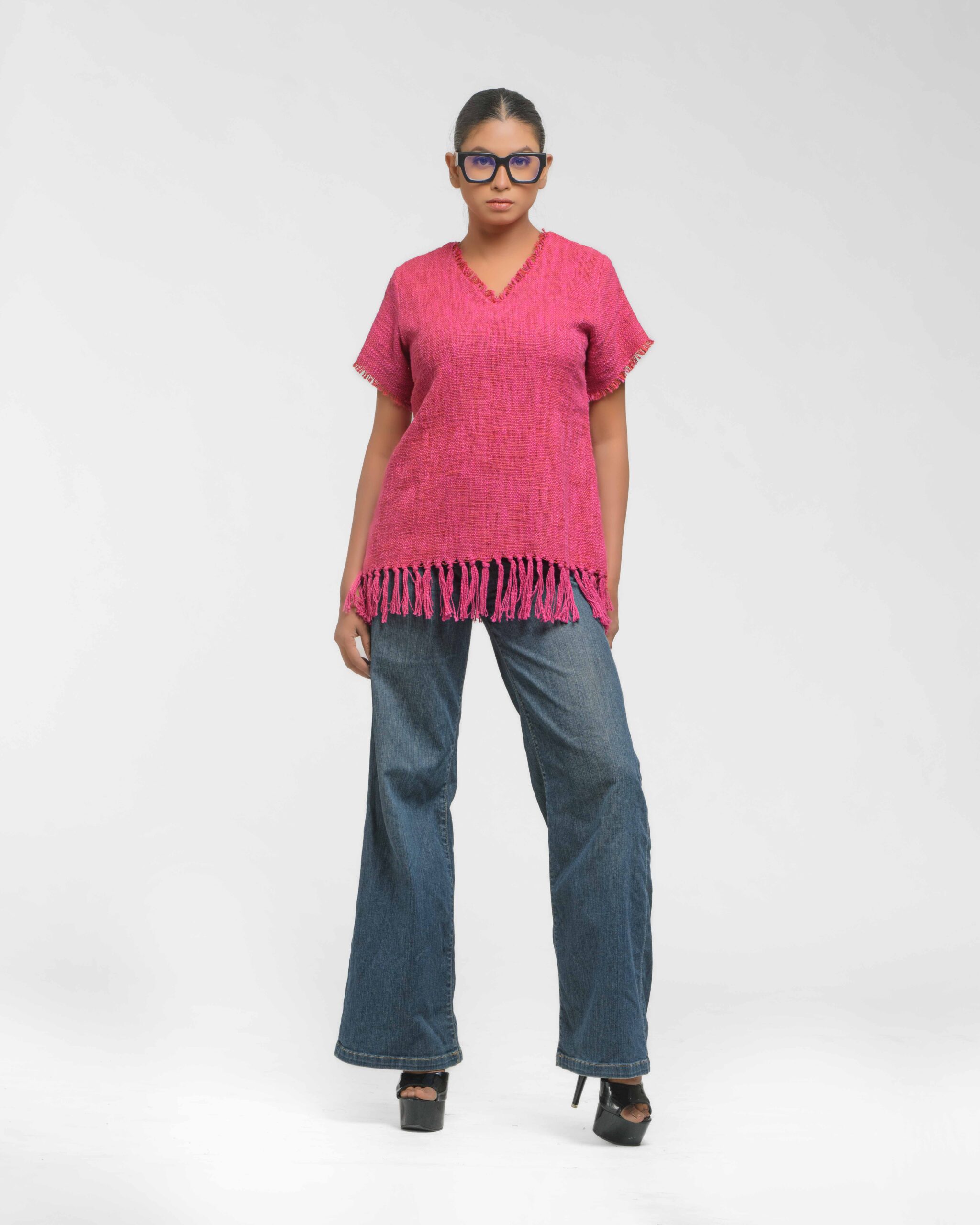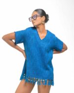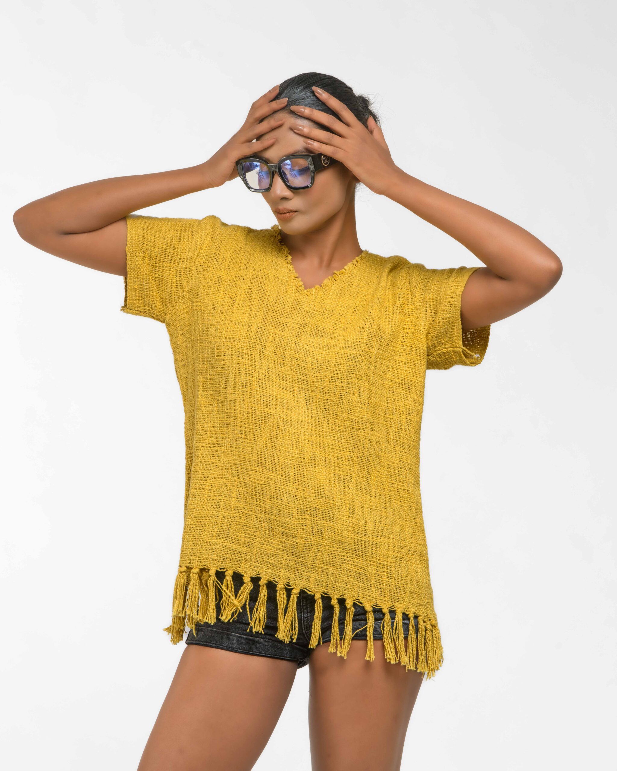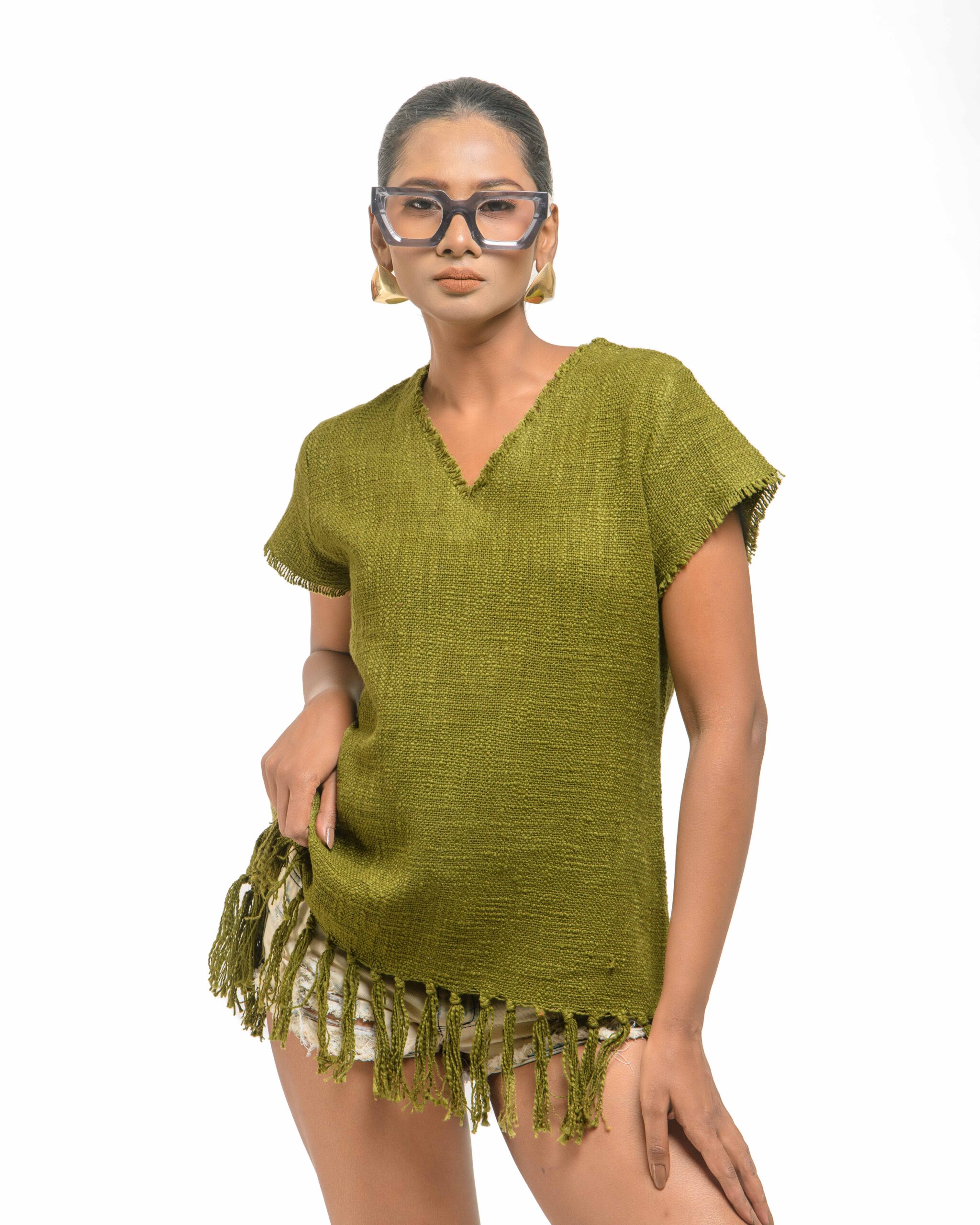 This vibrant, Azo-Free dyed top is made from a uniquely textured fabric, featuring irregular slub yarn and a loose weave for maximum breathability and comfort. Cut in a cool, casual silhouette and finished with playful fringes at the hem, this piece is the ultimate ethical statement for effortless, radiant style.