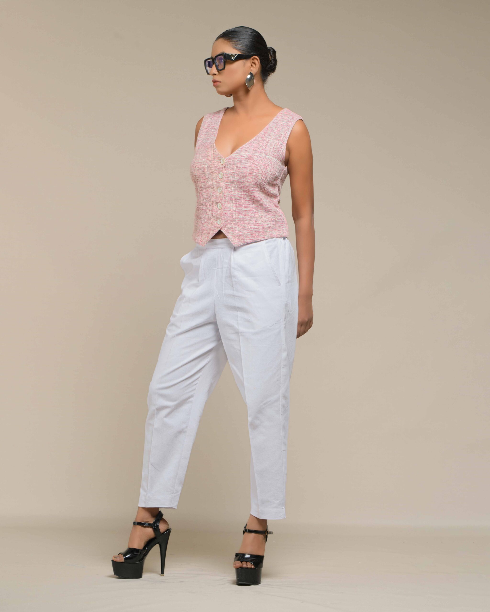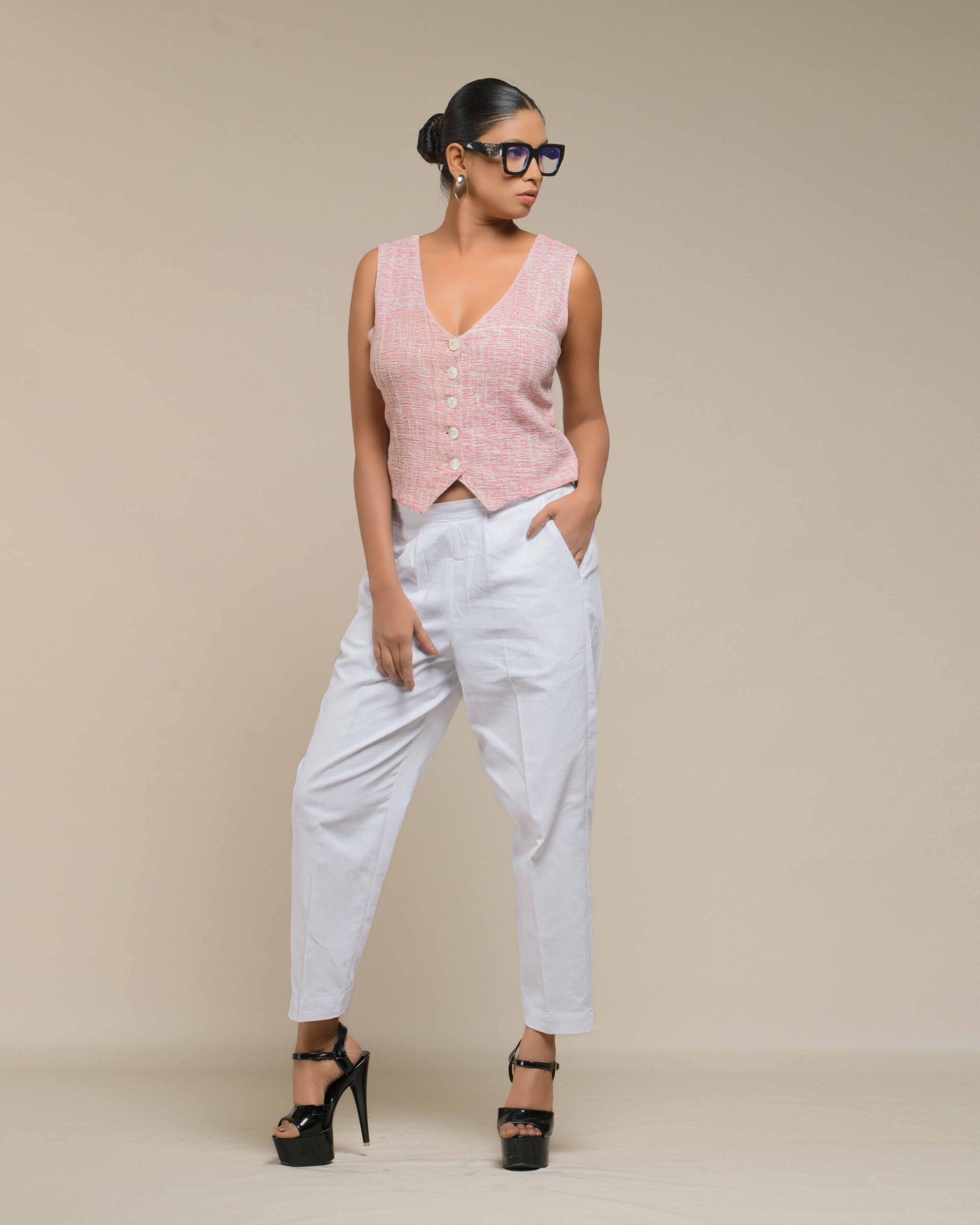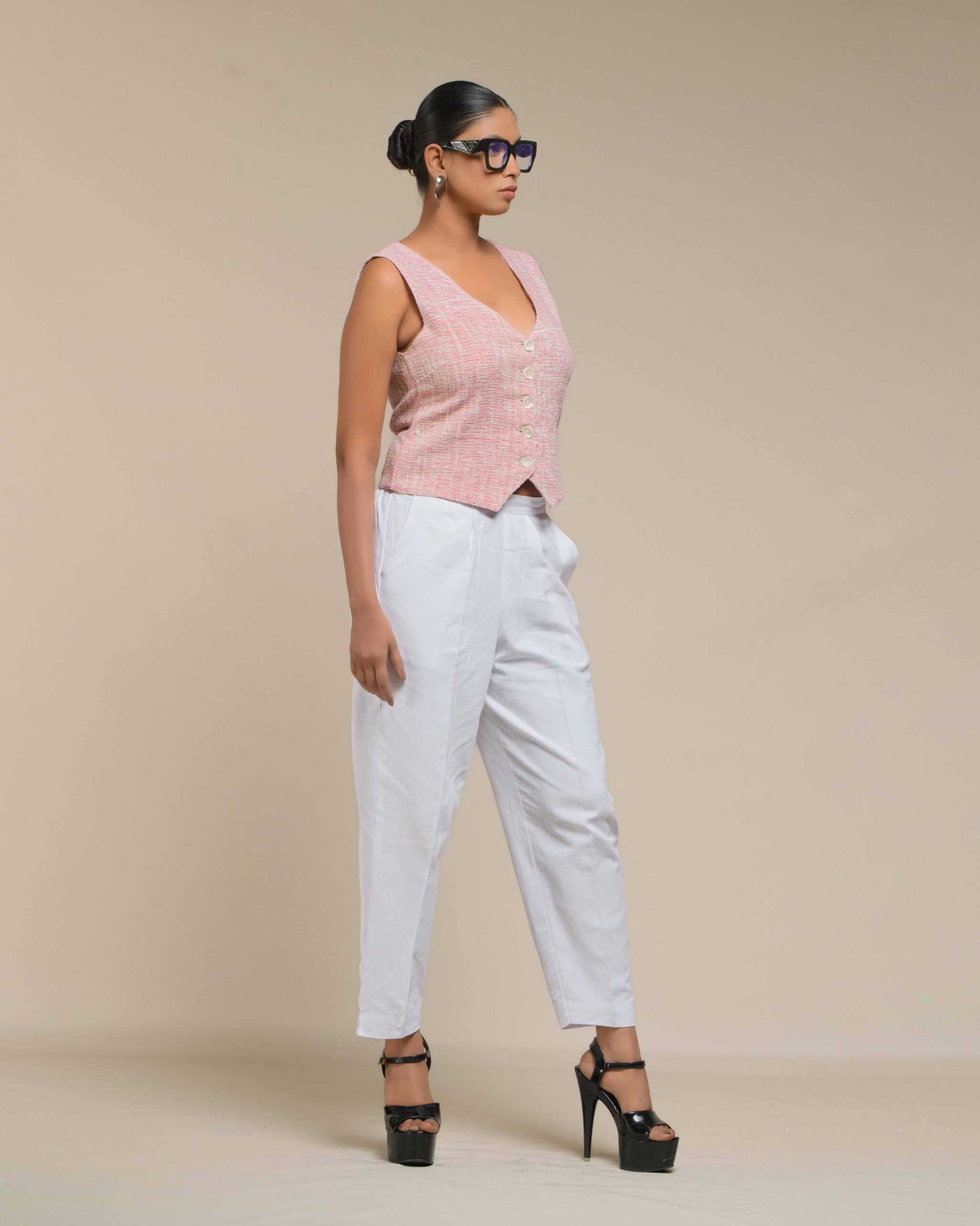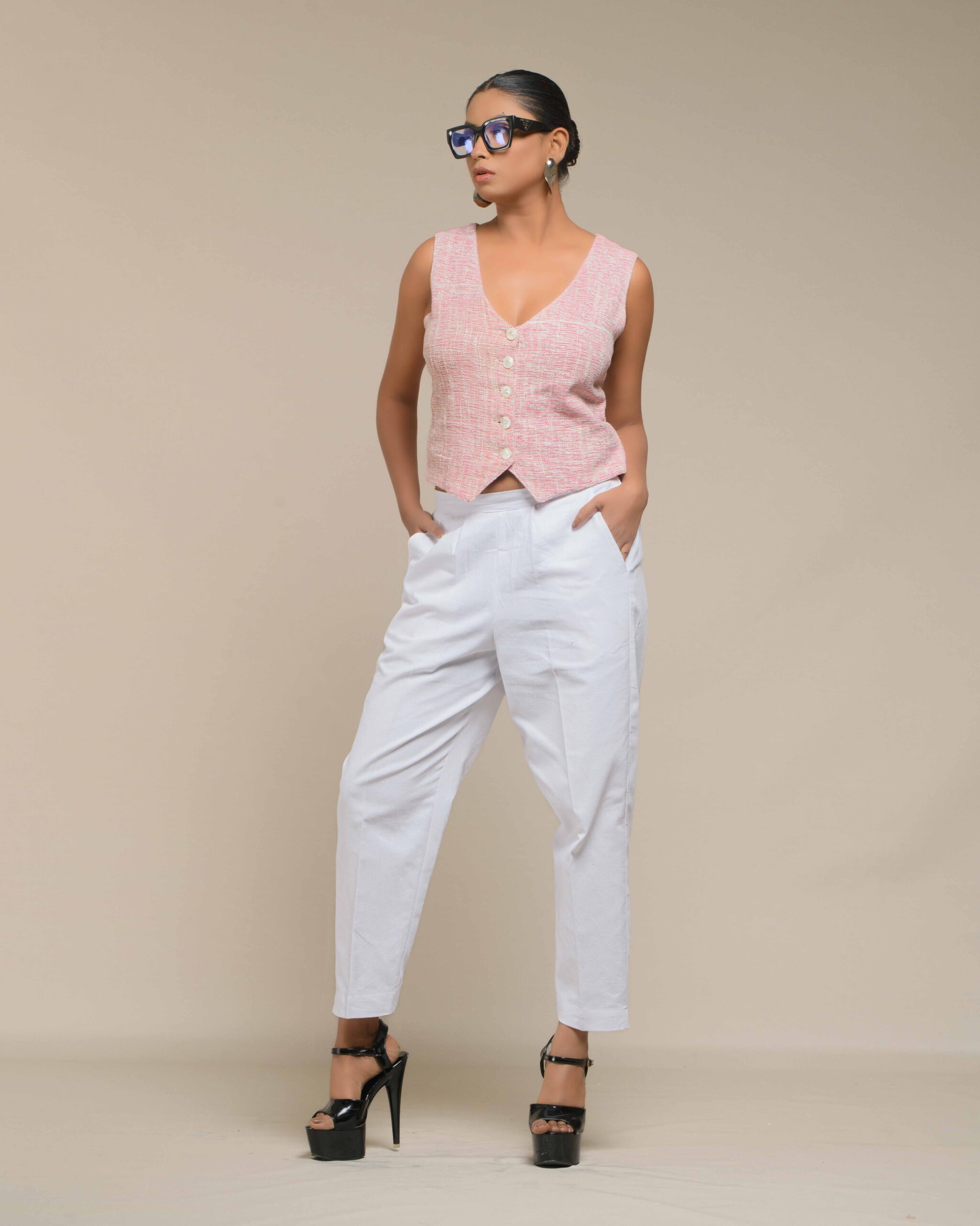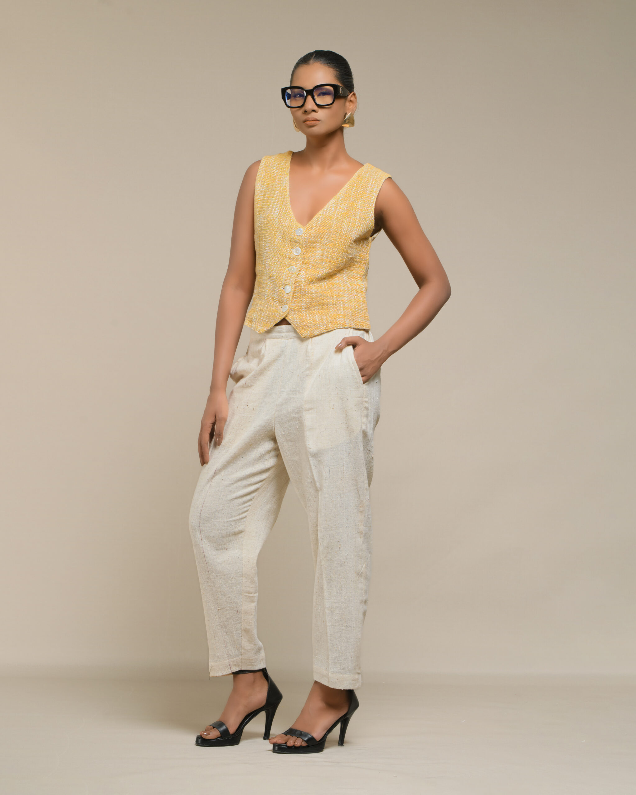 Modernity meets heritage in The Freedom Straight, a cigarette pant reimagined for the young and the restless. Crafted from our most authentic, hand-woven Khadi, this piece is a masterclass in simple silhouettes and timeless versatility, designed to be the foundation of a sustainable wardrobe that never goes out of fashion.The design honors your need for both effortless style and absolute comfort, featuring a clean, flat-front aesthetic paired with a discreet elasticated back and deep, functional pockets.