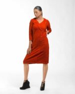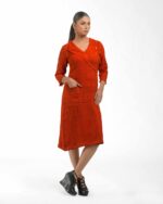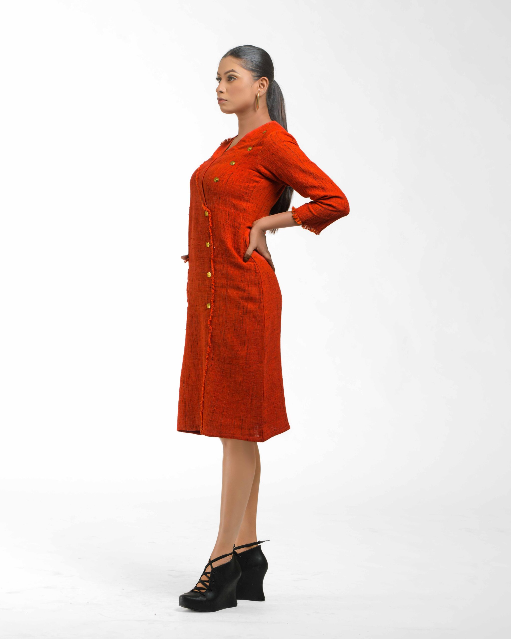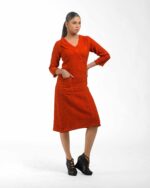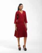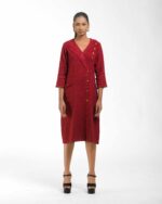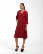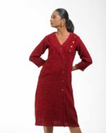 Crafted from premium Malaysian Khadi and colored using eco-conscious Azo-Free dyes, this dress offers unmatched drape and ethical style. Its tailored silhouette is instantly elevated by the unique one-side flap detail, providing a sophisticated, modern cut that makes a quiet, confident statement.