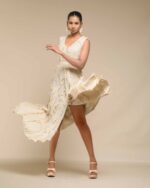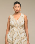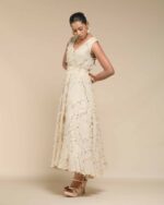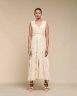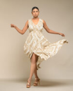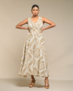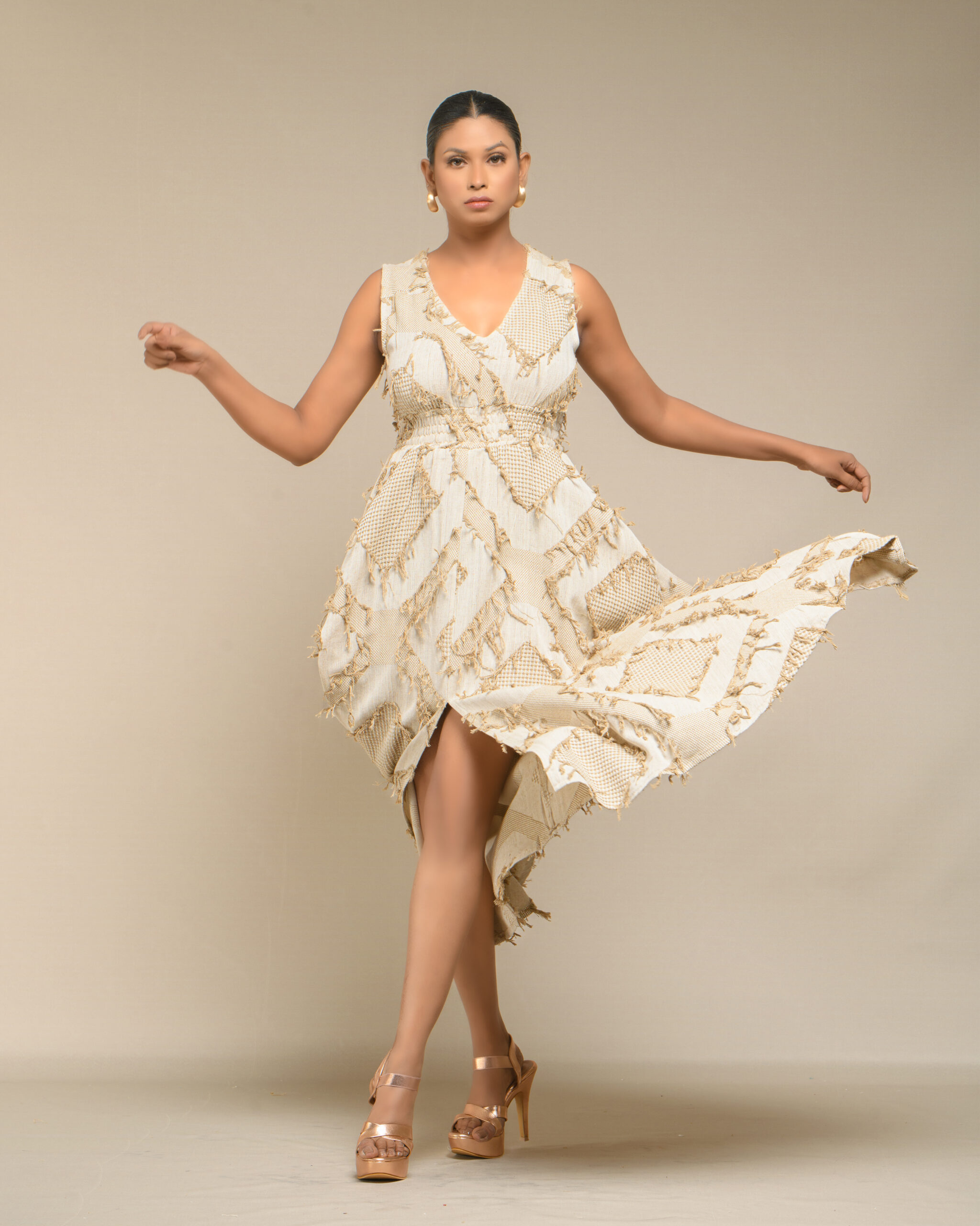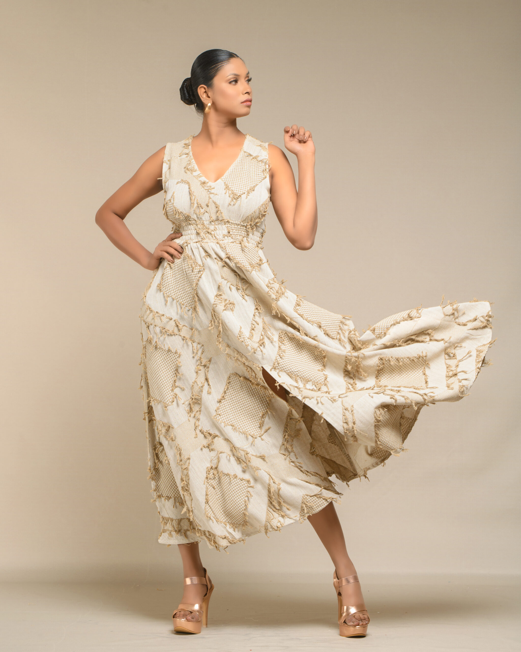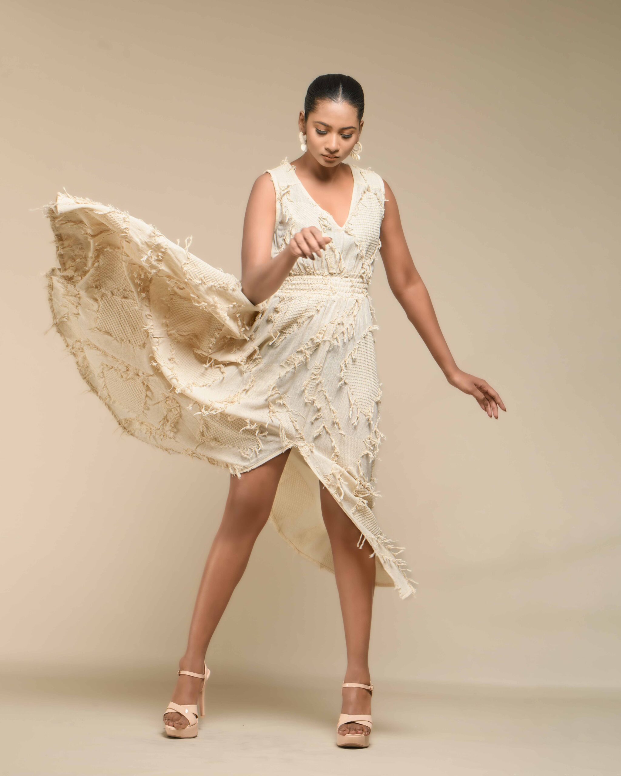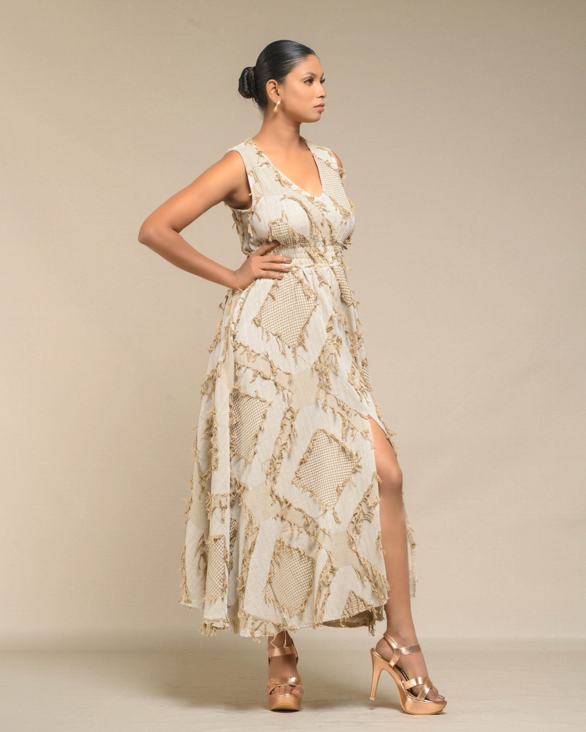 A true statement in artisanal luxury, this long Handloom cotton dress showcases our USP fringed and textured fabric, creating dynamic surface dimension.